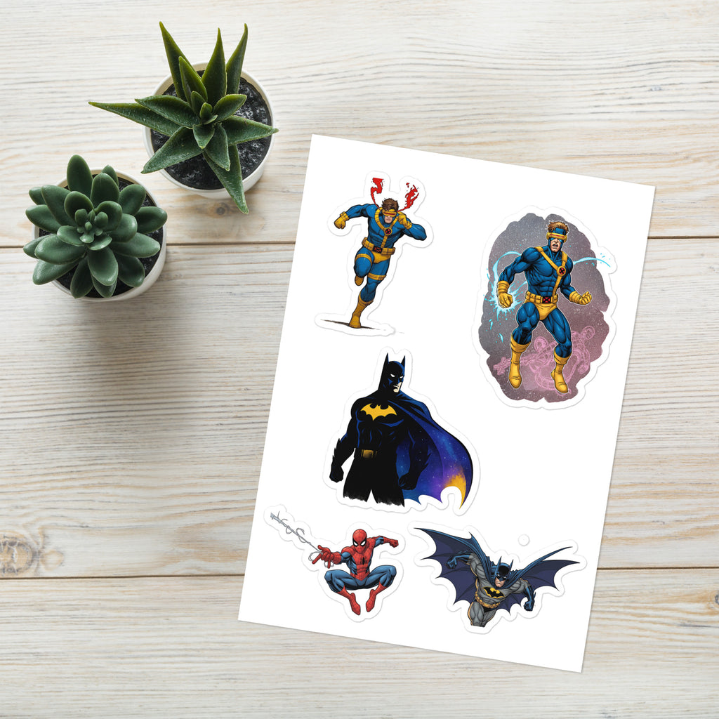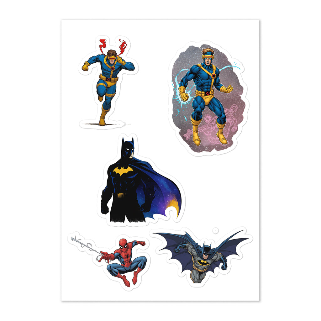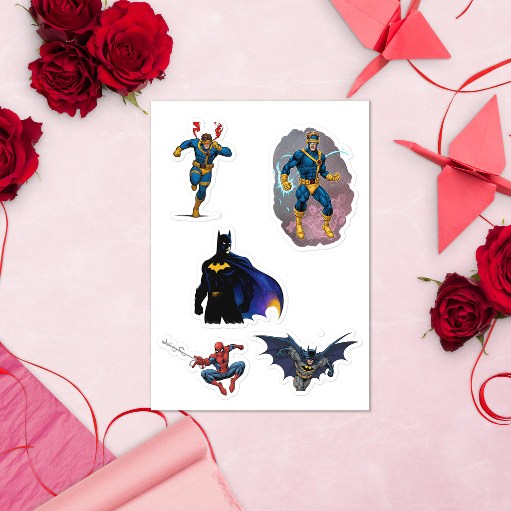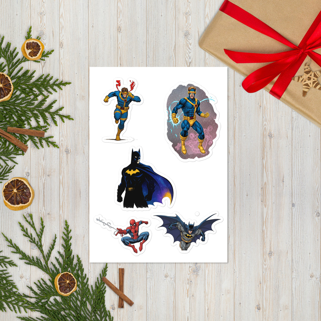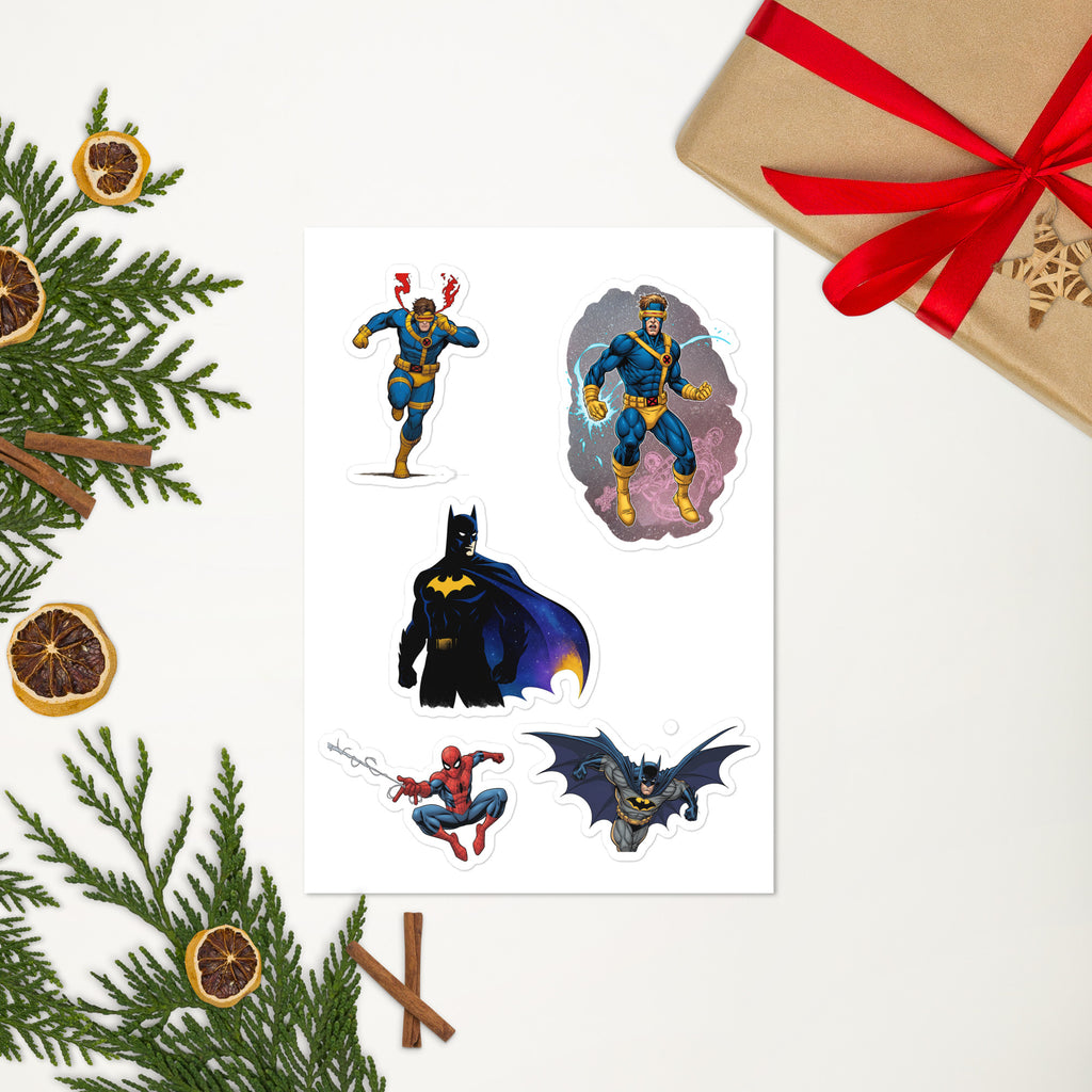 Heroes Sticker Sheet adds superhero style to laptops, water bottles, notebooks, and more. The Heroes Sticker Sheet is glossy, durable, and easy to apply for clean, long-lasting results.