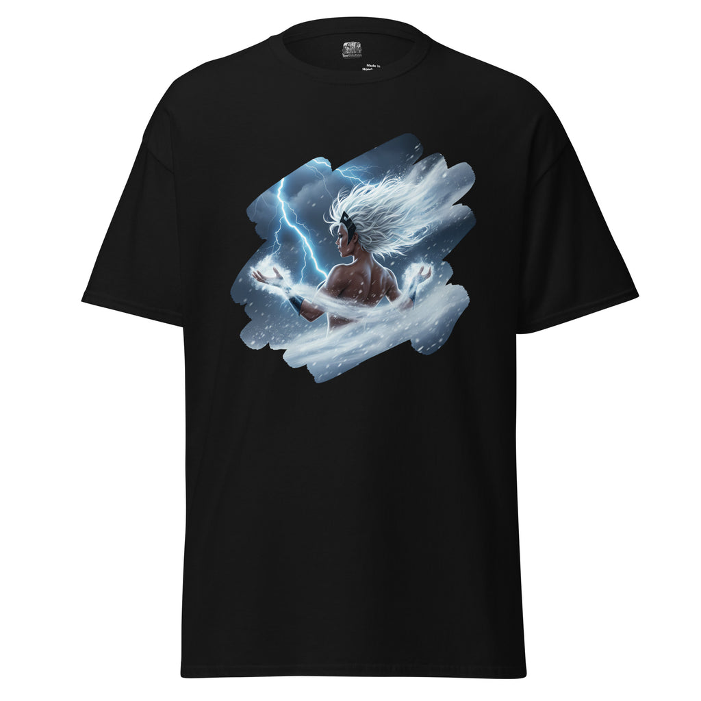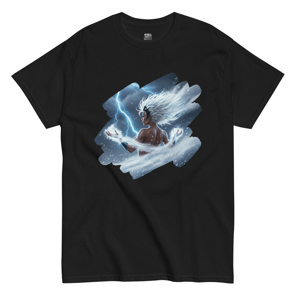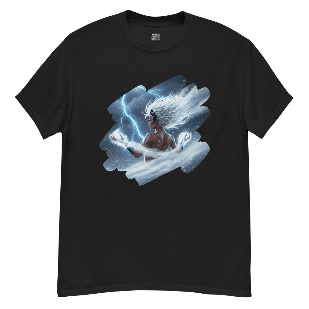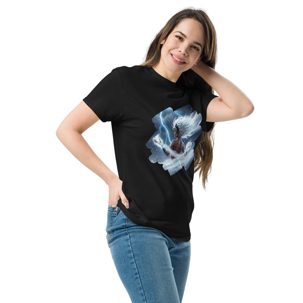 Marvel X-Men Storm Weather Goddess Classic Tee channels the sky itself. Lets call the thunder with Ororo and light up the horizon.