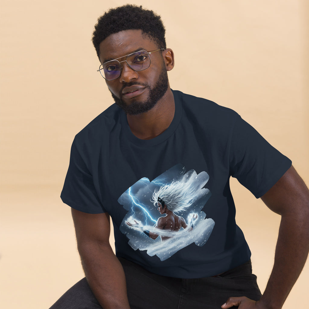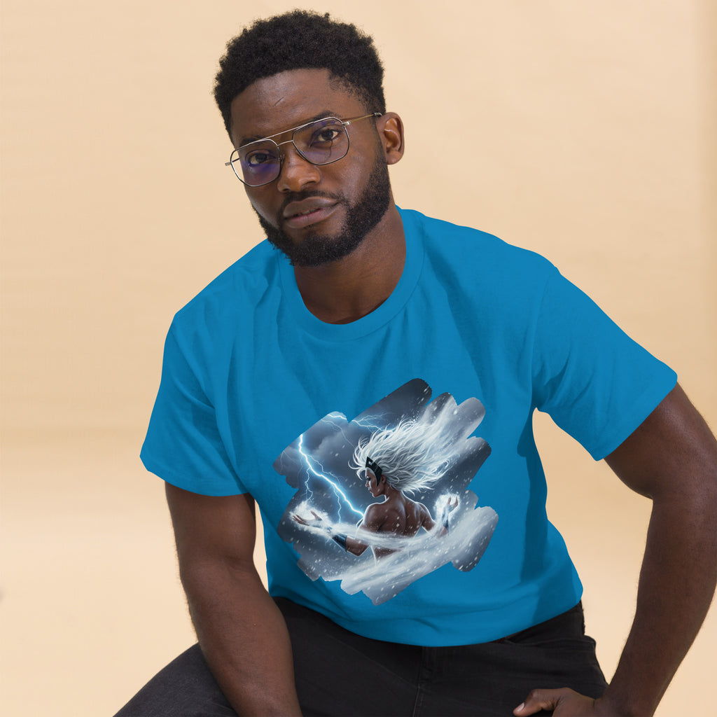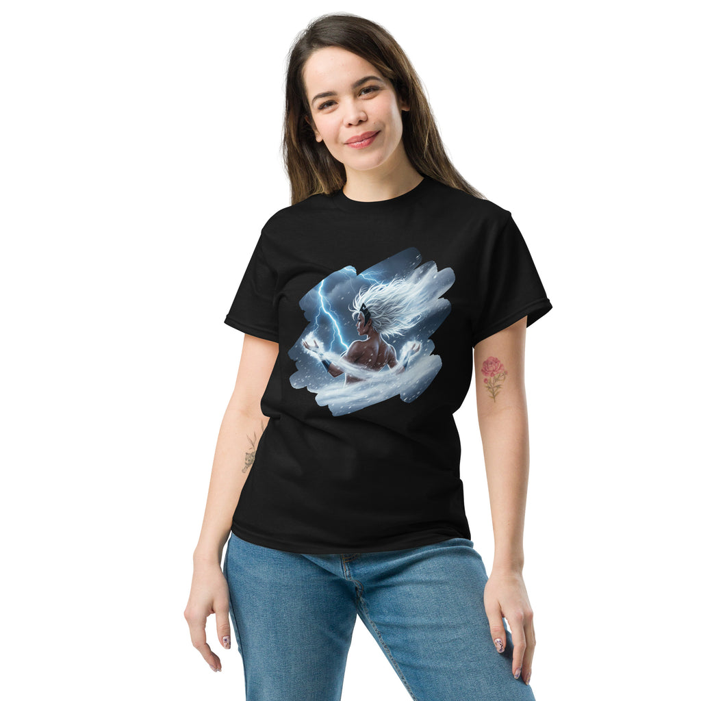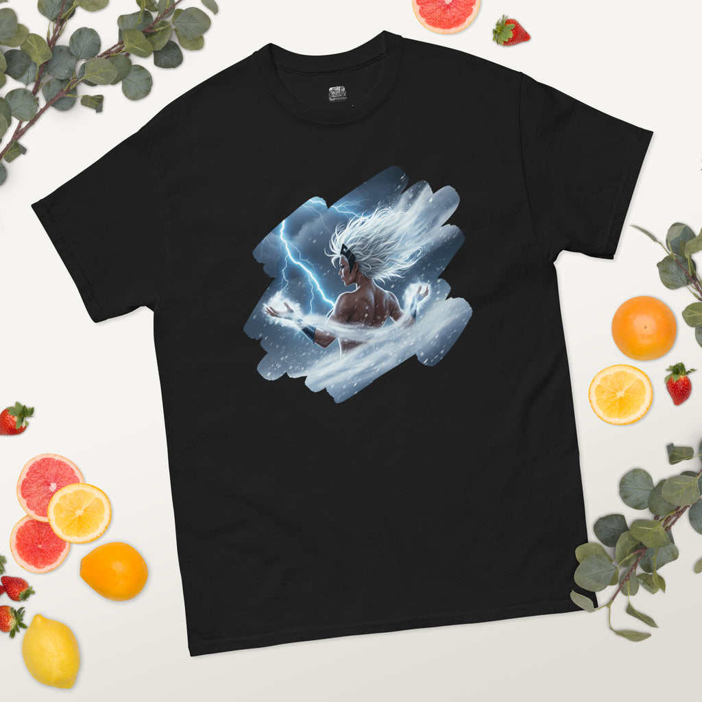 Marvel X-Men Storm Weather Goddess Classic Tee channels the sky itself. Lets call the thunder with Ororo and light up the horizon.