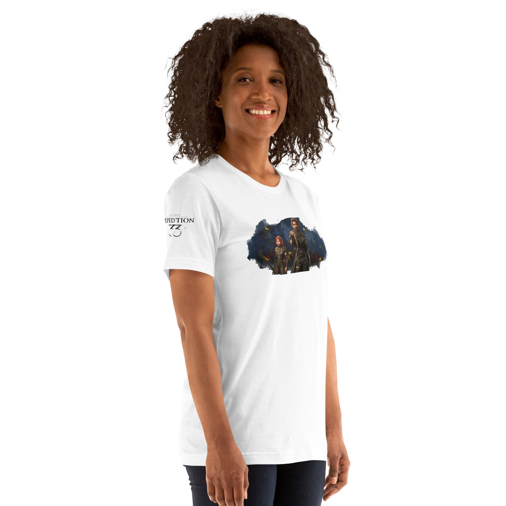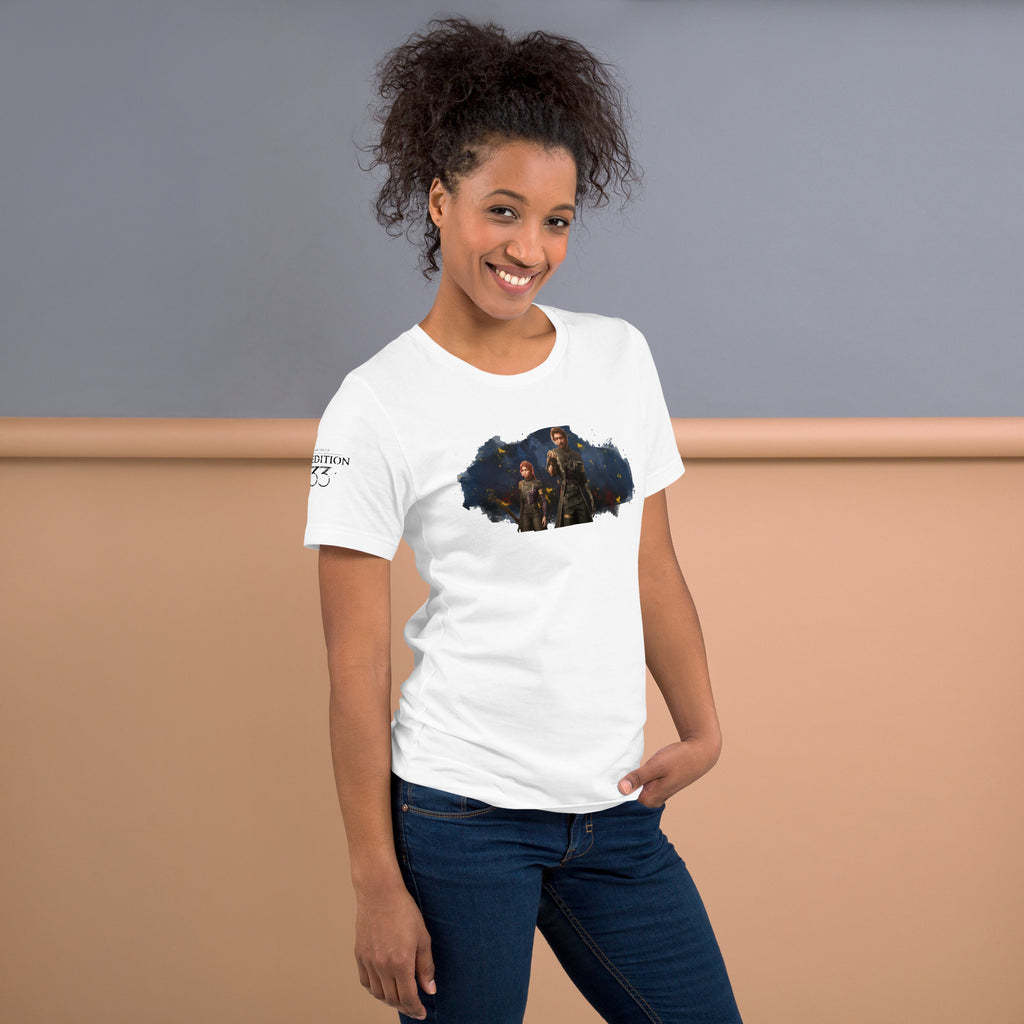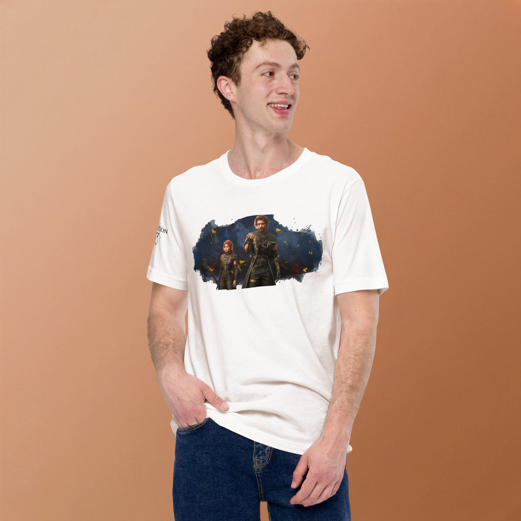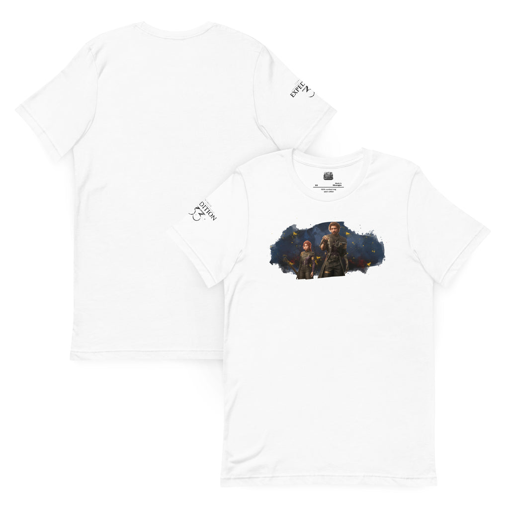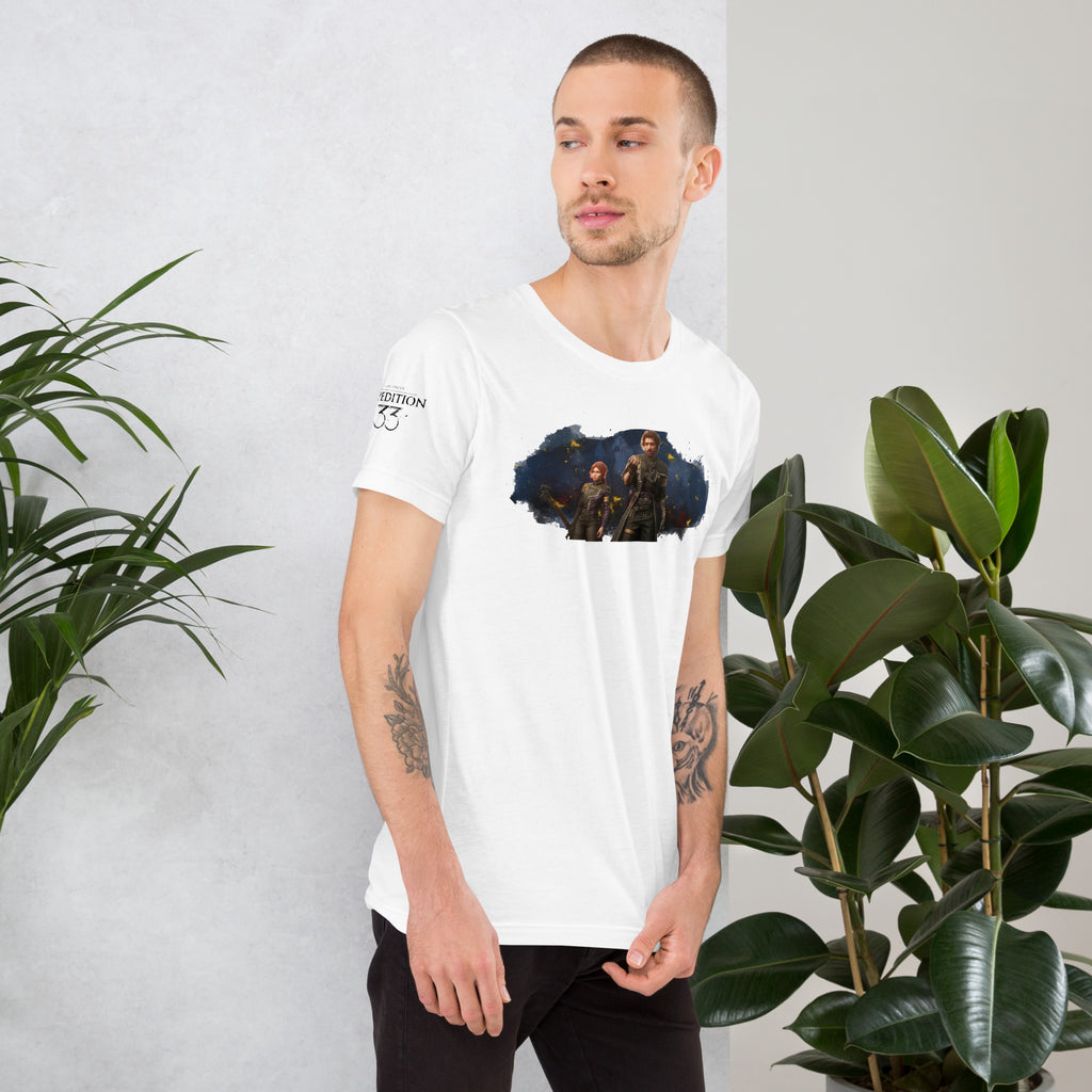 Expedition 33 Maelle and Gustave Adventure Comic Tee brings the journey to life in bold panels. Lets step into the story with Maelle and Gustave.