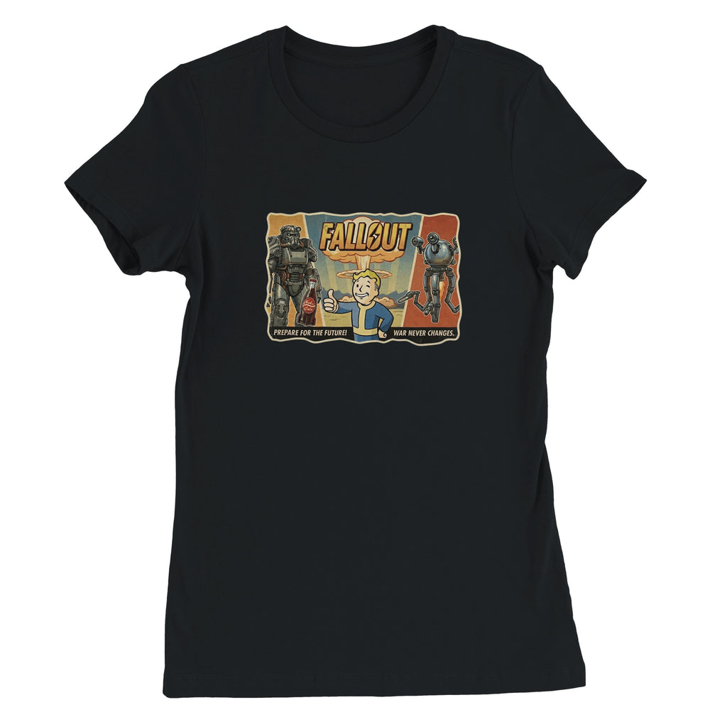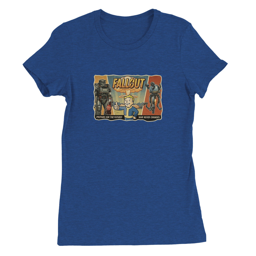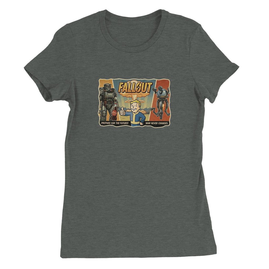 Fallout Vault-Tec Premium Womens Tee | Bella + Canvas 6004 brings Vault-Tec style to a soft, breathable feel with a flattering fit. The Fallout Vault-Tec Premium Womens Tee | Bella + Canvas 6004 is made for long days beyond the Vault.