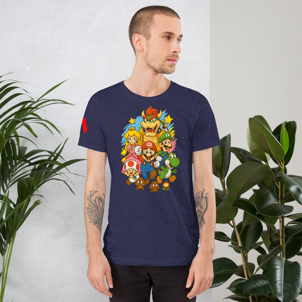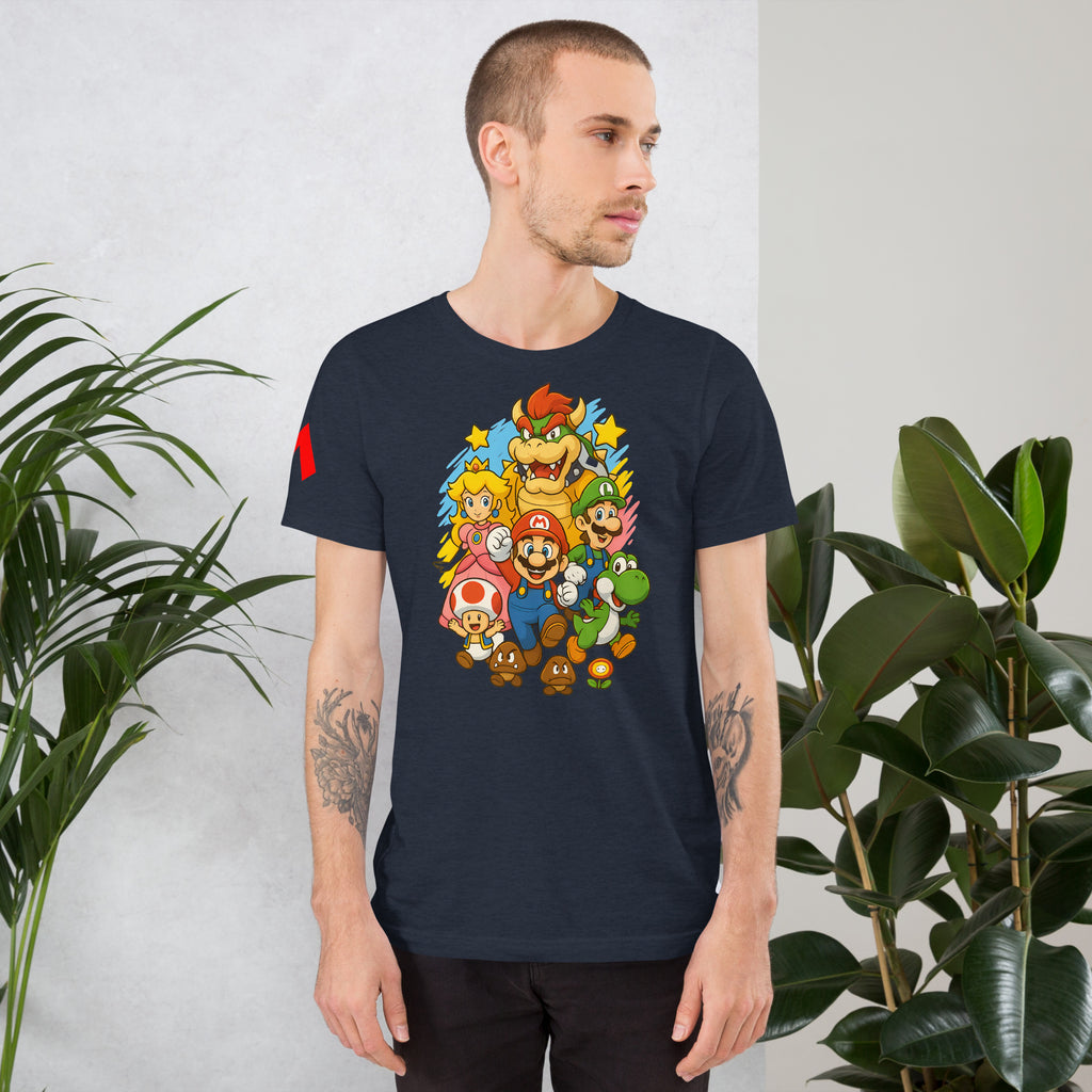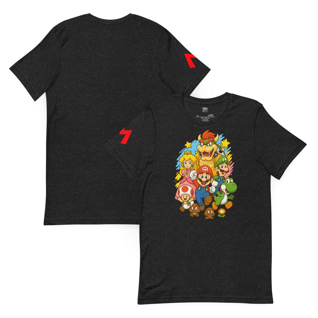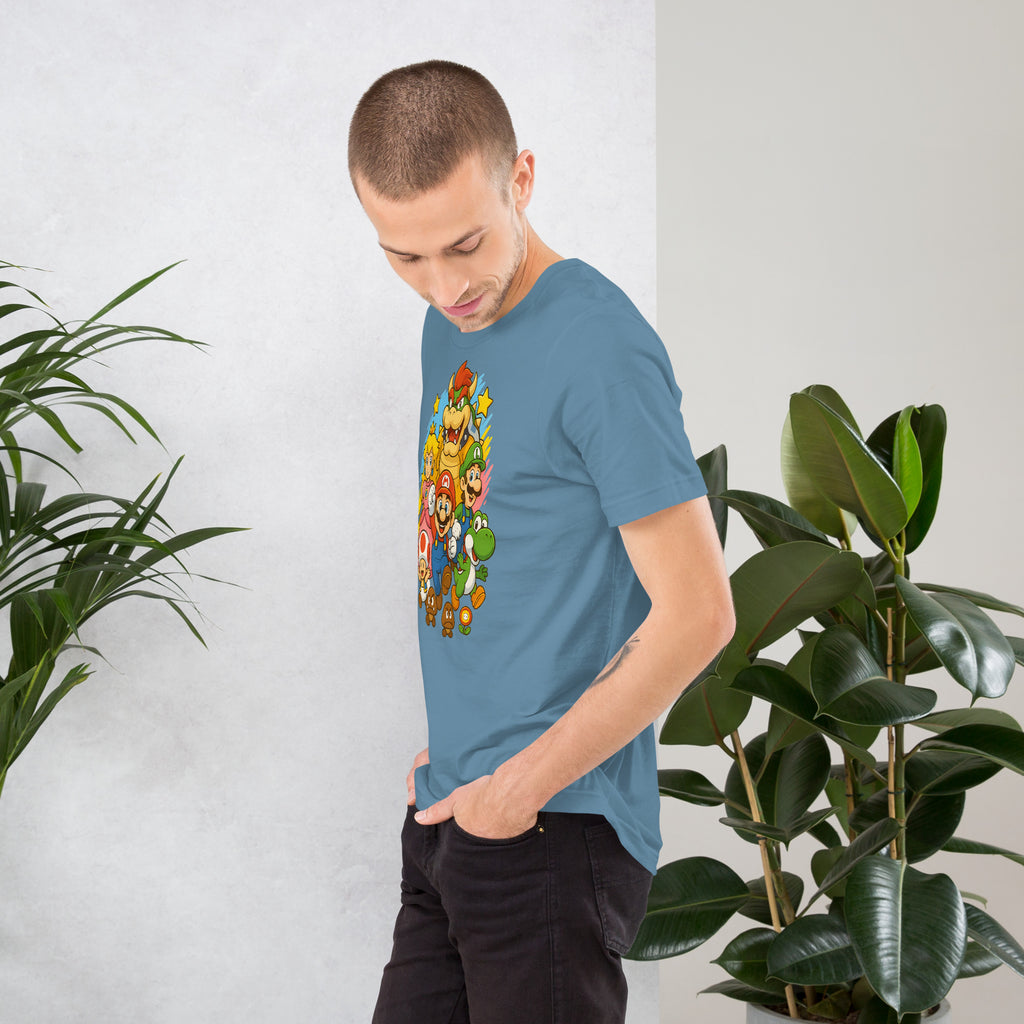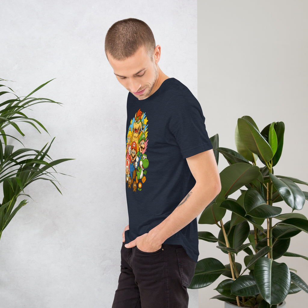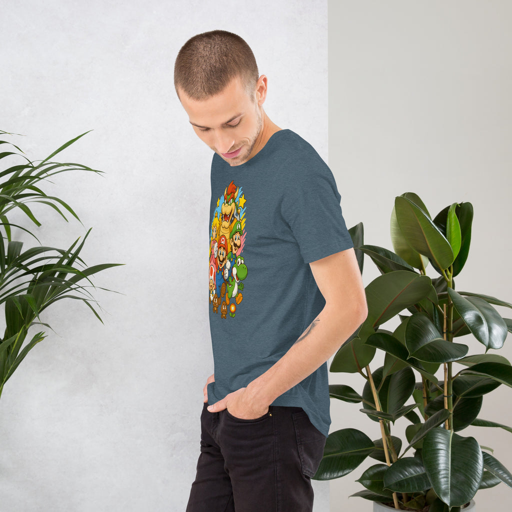 Nintendo Super Mario Kingdom Heroes Premium Tee brings soft 100% cotton comfort with a bold Mario cast. The Nintendo Super Mario Kingdom Heroes Premium Tee keeps you comfortable while you power up.