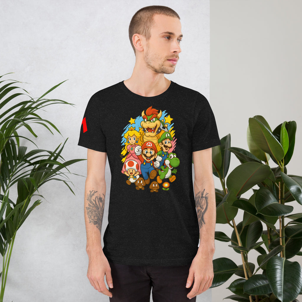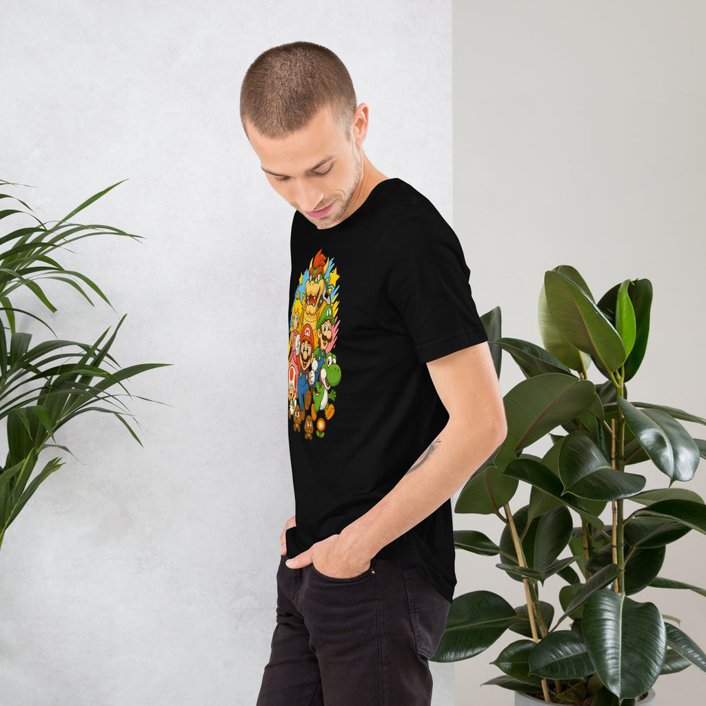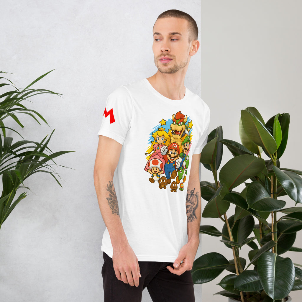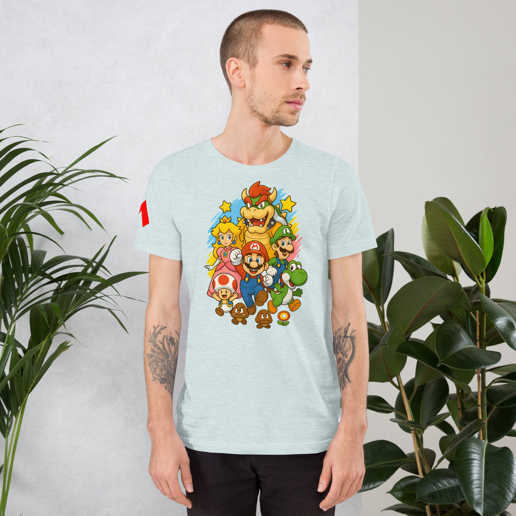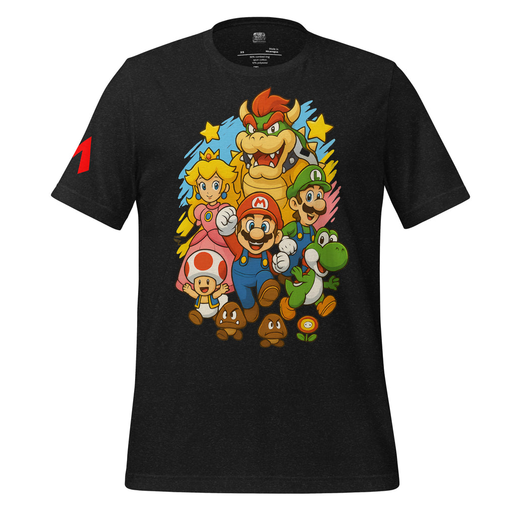 Nintendo Super Mario Kingdom Heroes Premium Tee brings soft 100% cotton comfort with a bold Mario cast. The Nintendo Super Mario Kingdom Heroes Premium Tee keeps you comfortable while you power up.