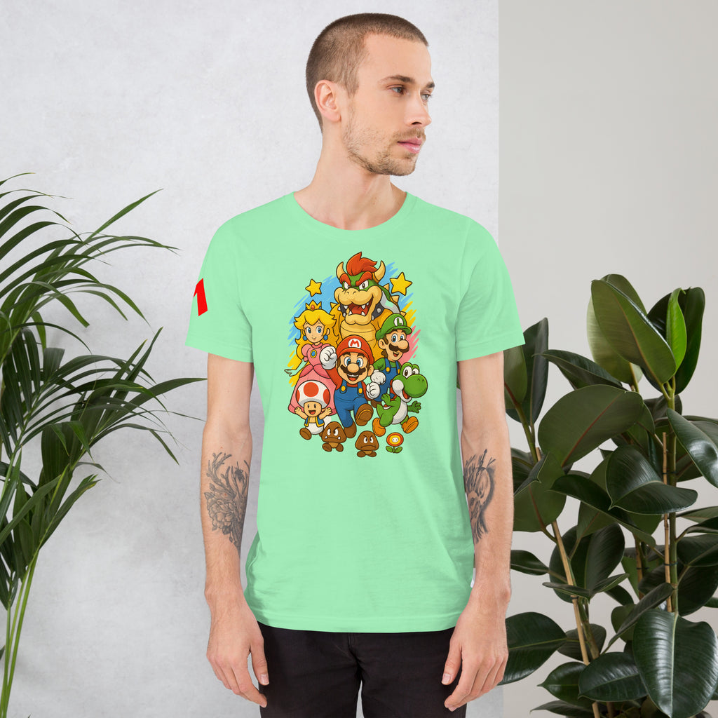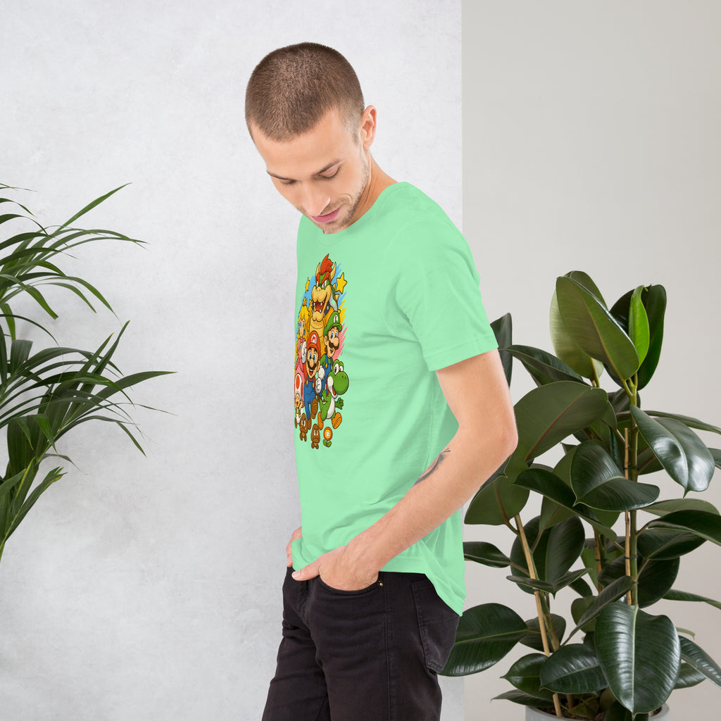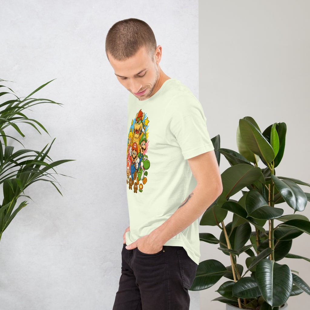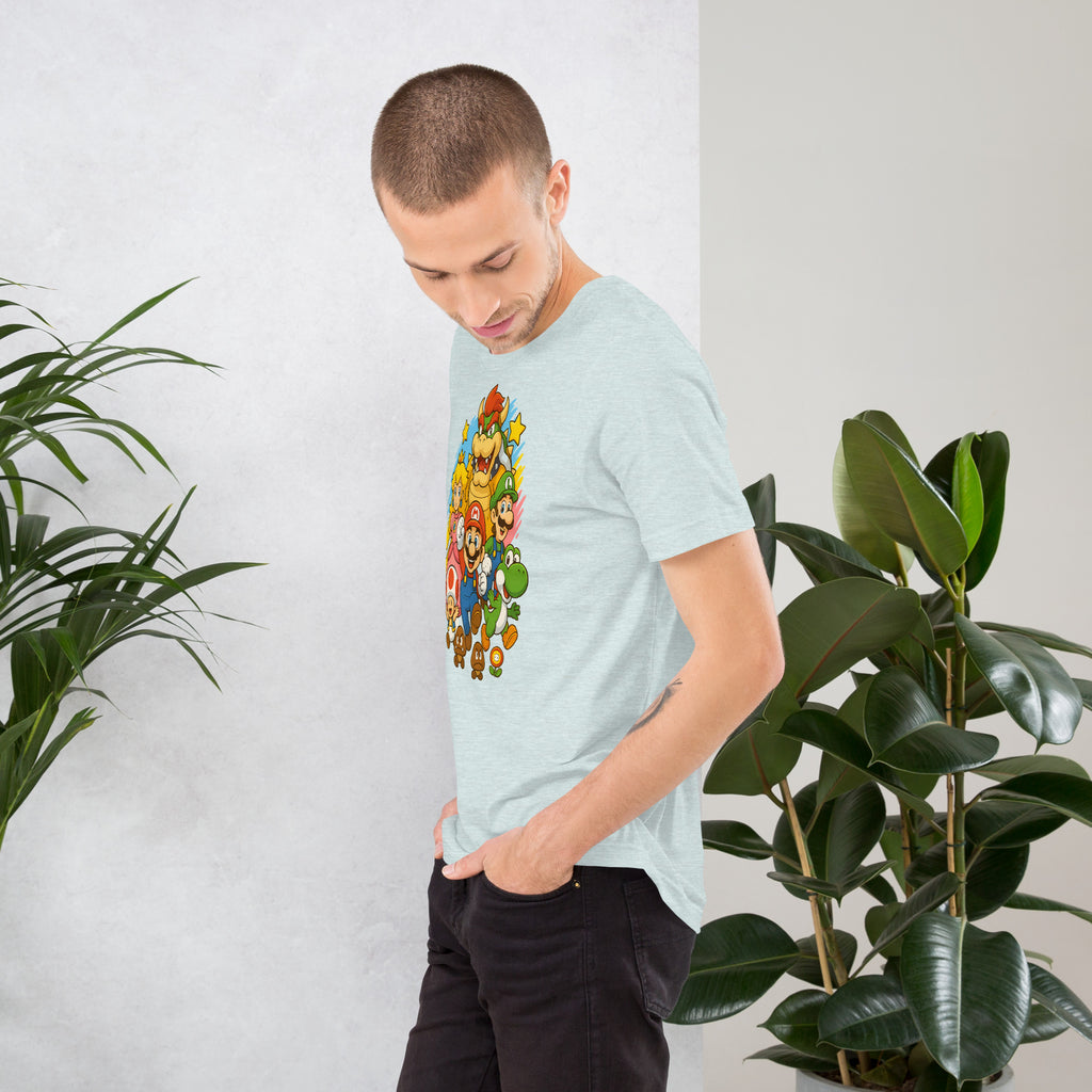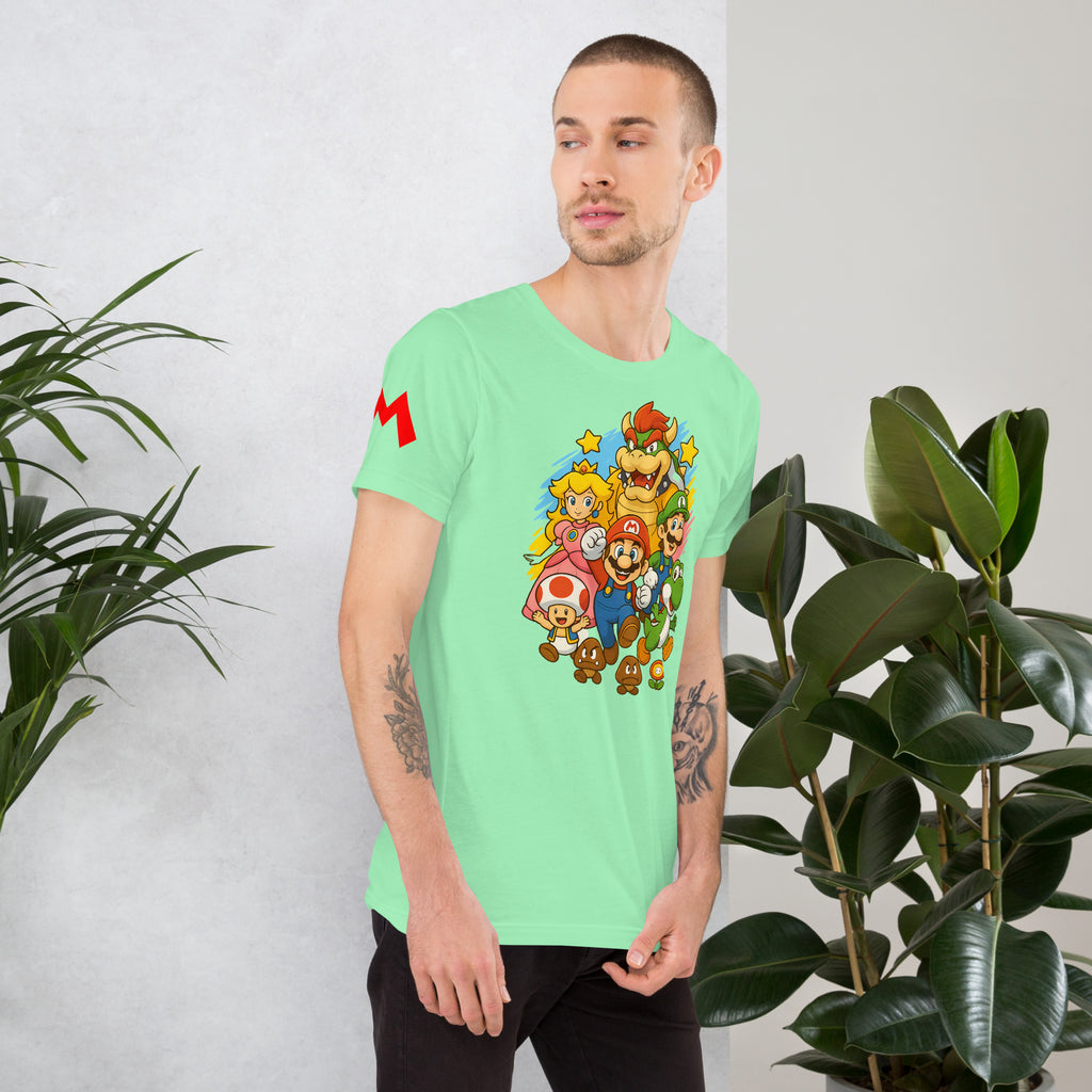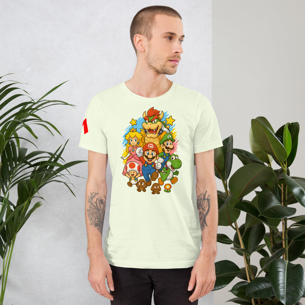 Nintendo Super Mario Kingdom Heroes Premium Tee brings soft 100% cotton comfort with a bold Mario cast. The Nintendo Super Mario Kingdom Heroes Premium Tee keeps you comfortable while you power up.