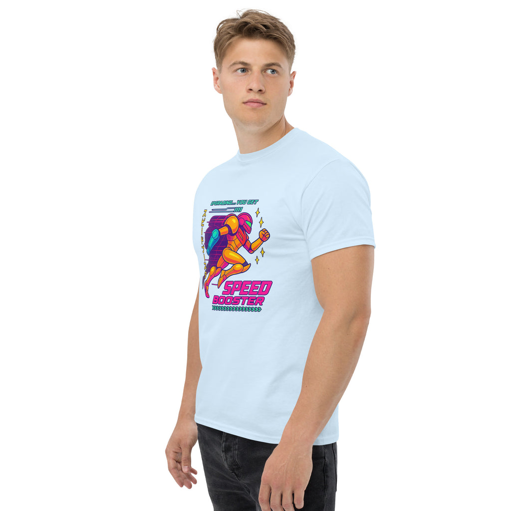 Nintendo Metroid Samus Running Bright Colors Classic Tee brings the galaxy hunter to your everyday rotation. Lets power up with Samus and blast through Zebes together.