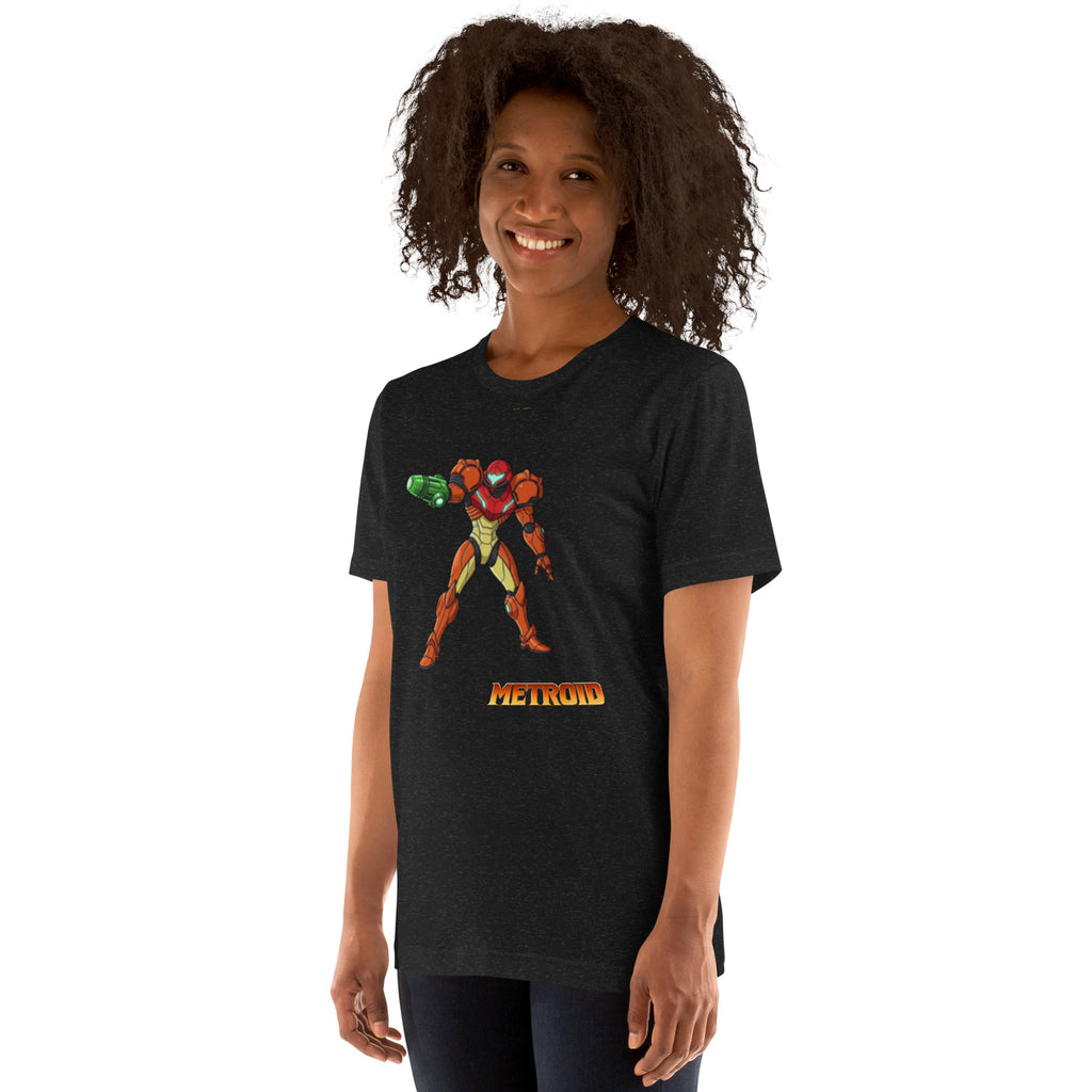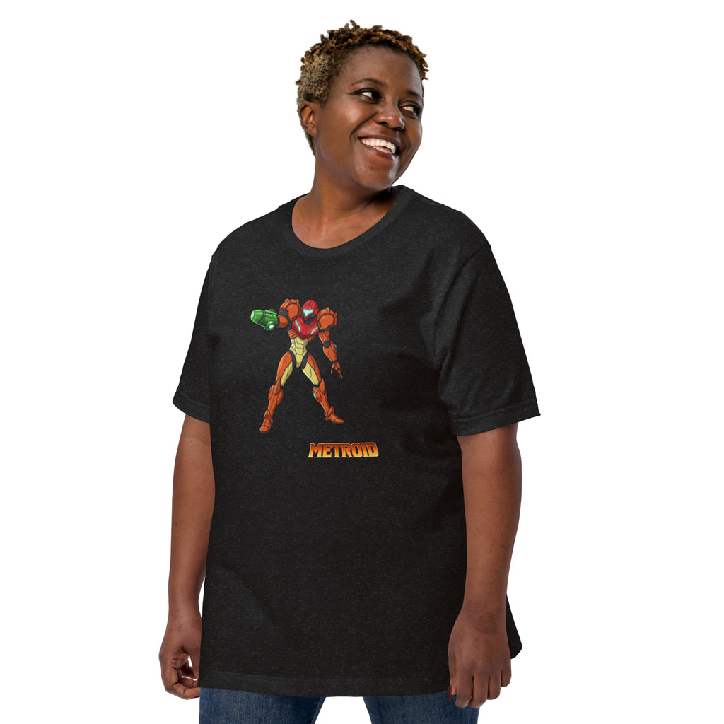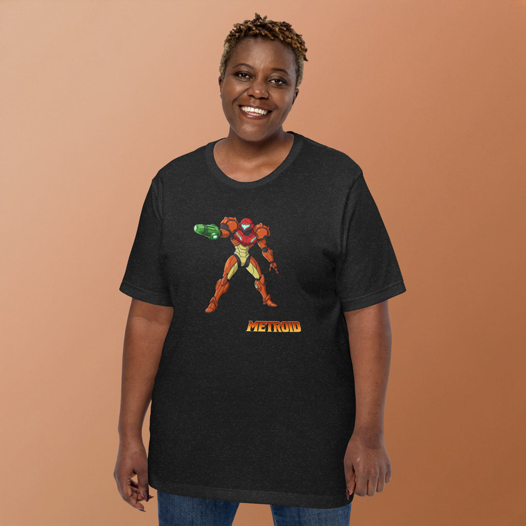 Nintendo Metroid Samus Graphic Unisex Tee brings clean Samus art to a breathable cotton essential. Lets explore the galaxy and keep the Power Suit ready.
