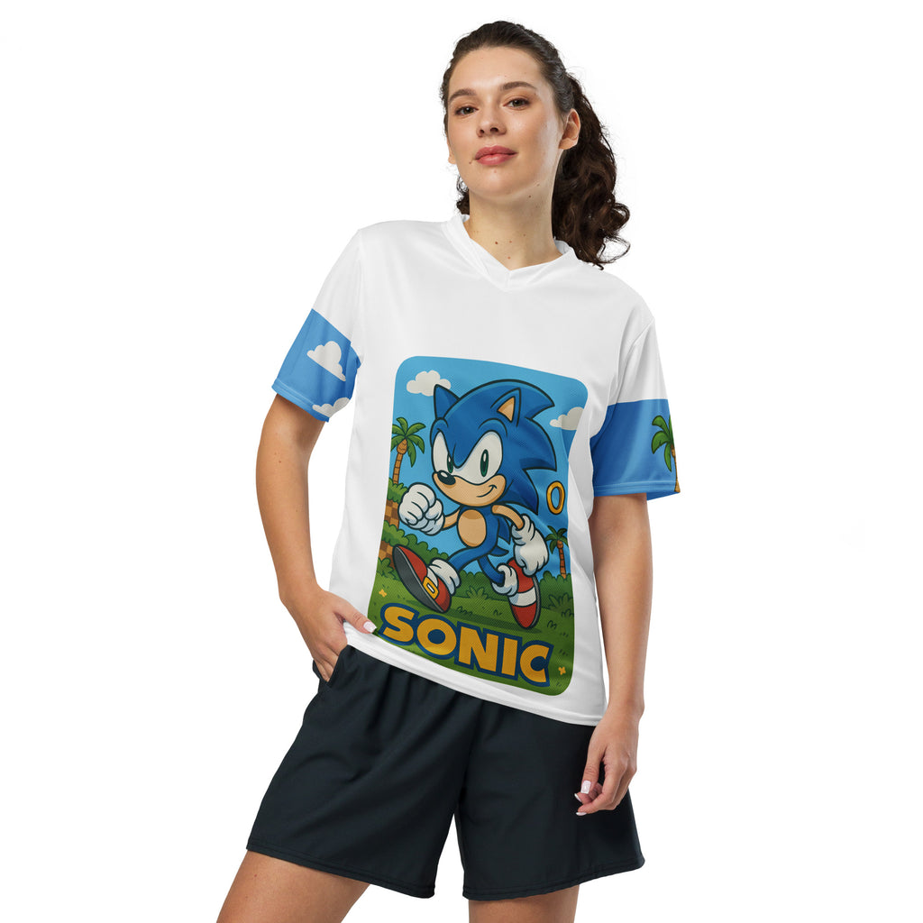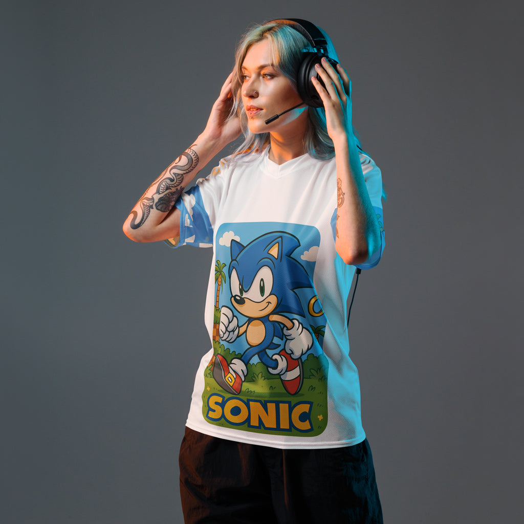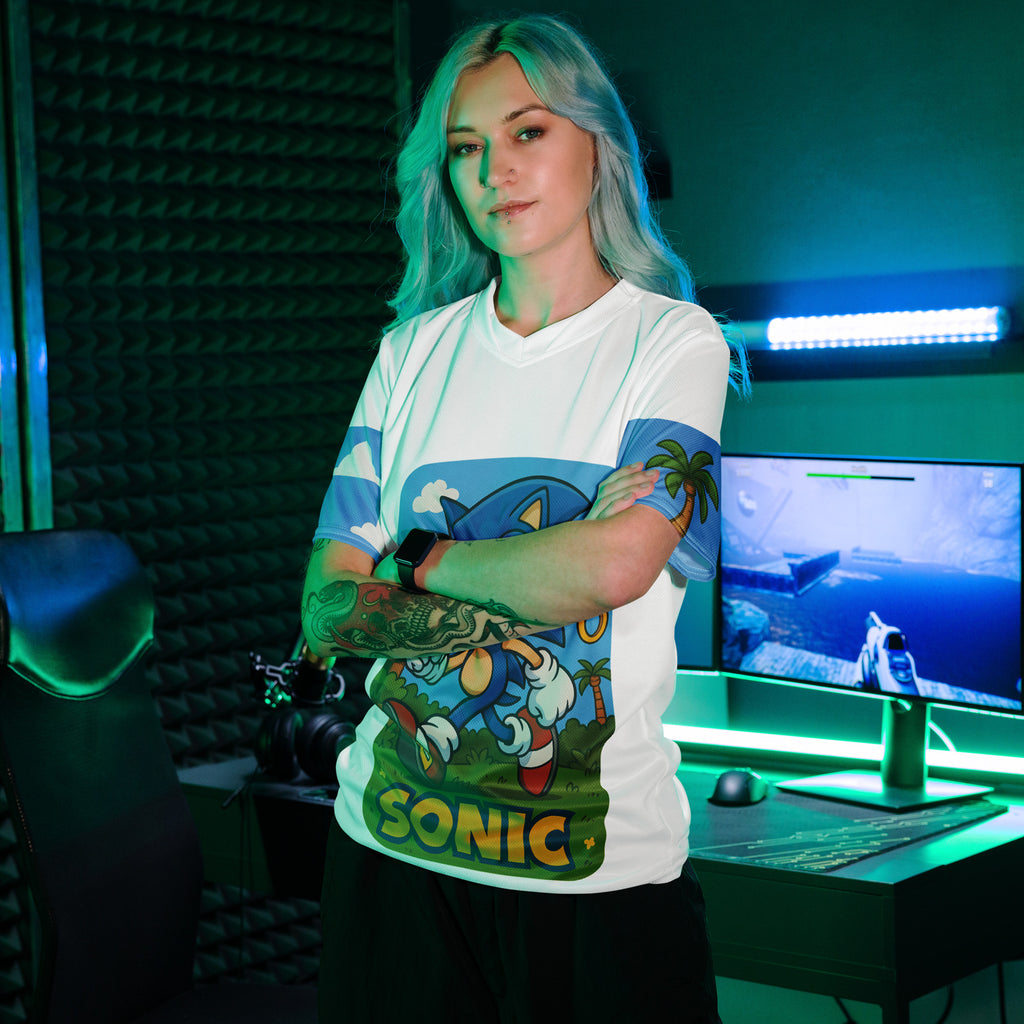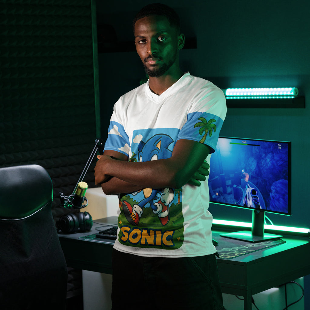 Sega Sonic Athletic Sports Jersey brings speed and style to your active days. Lets race through Green Hill Zone and keep the momentum.