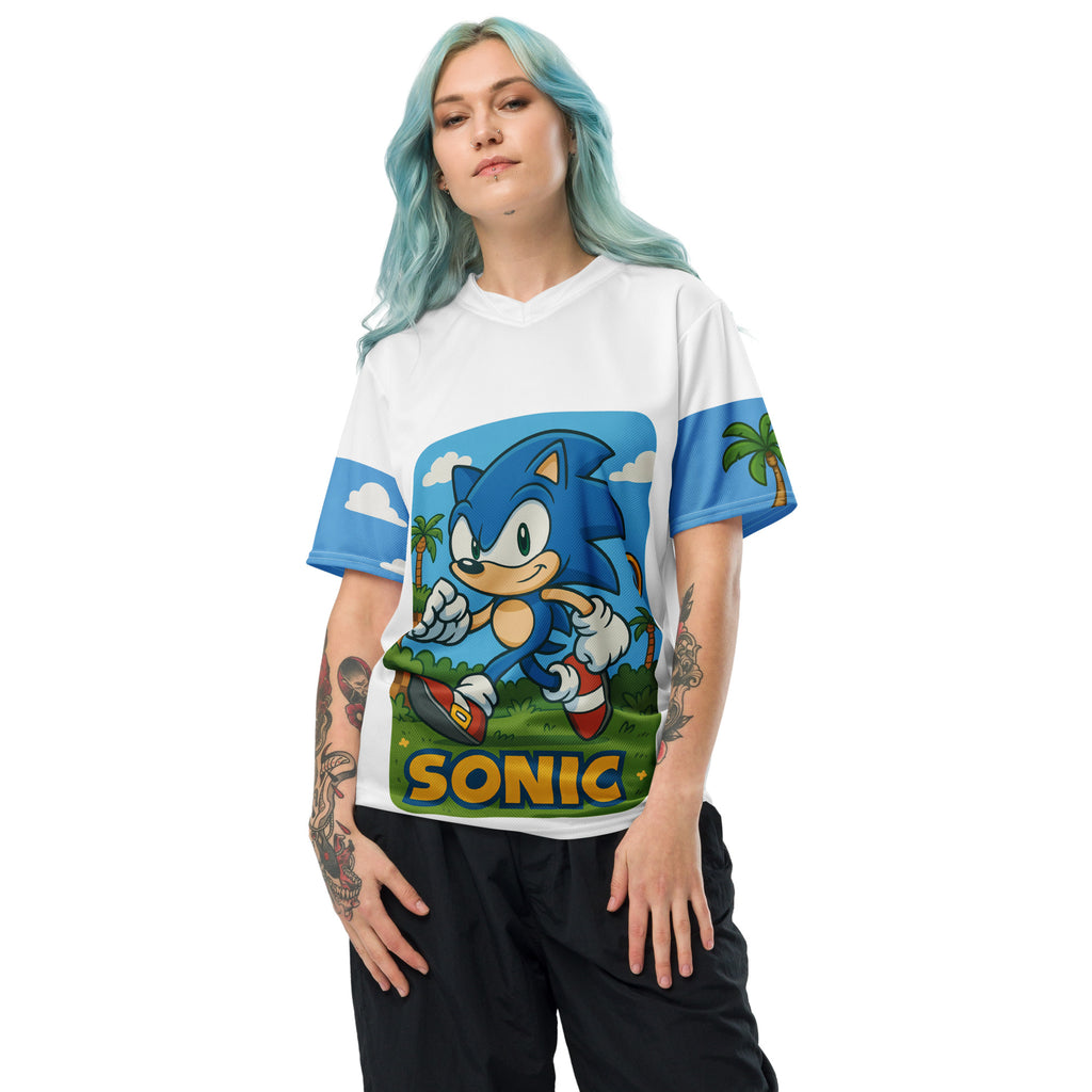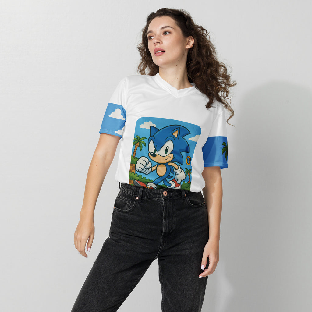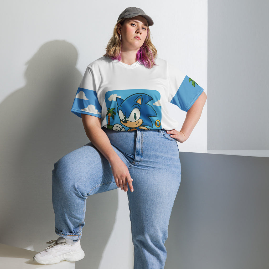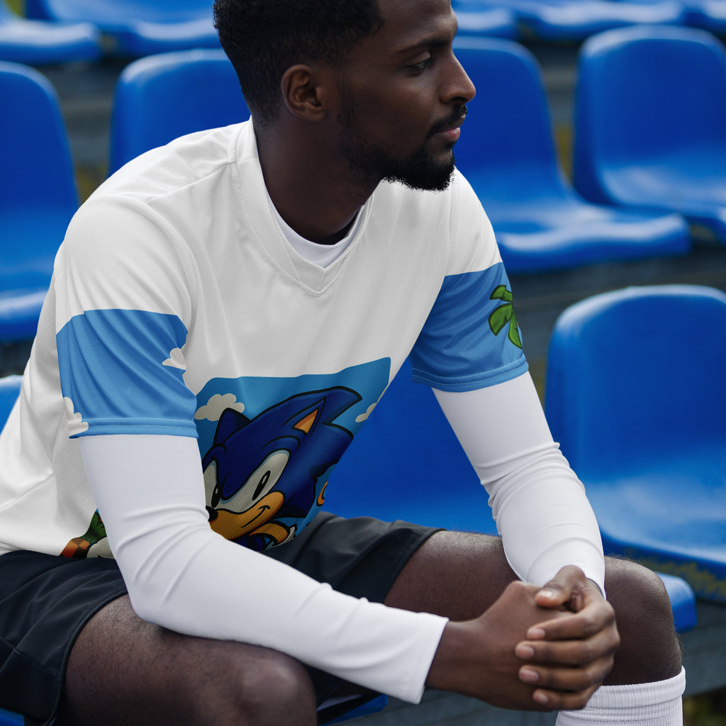 Sega Sonic Athletic Sports Jersey brings speed and style to your active days. Lets race through Green Hill Zone and keep the momentum.