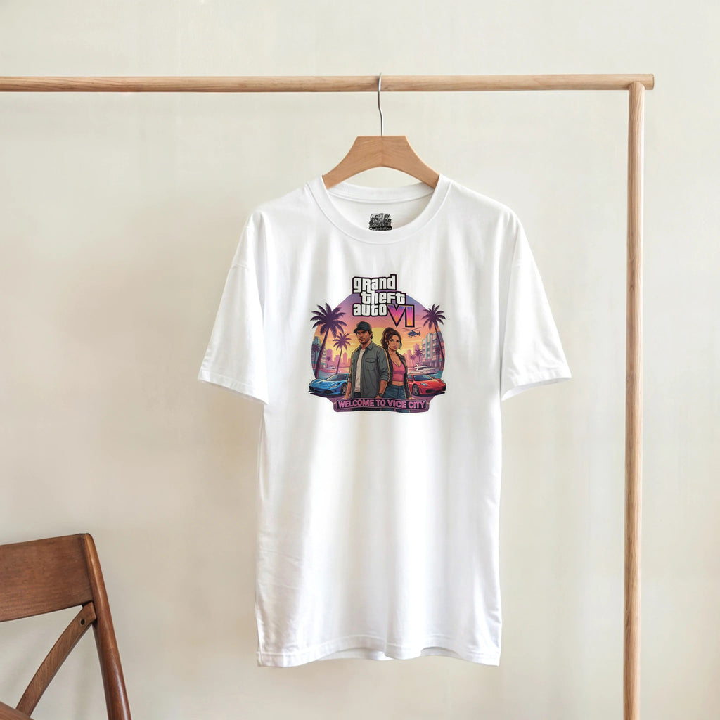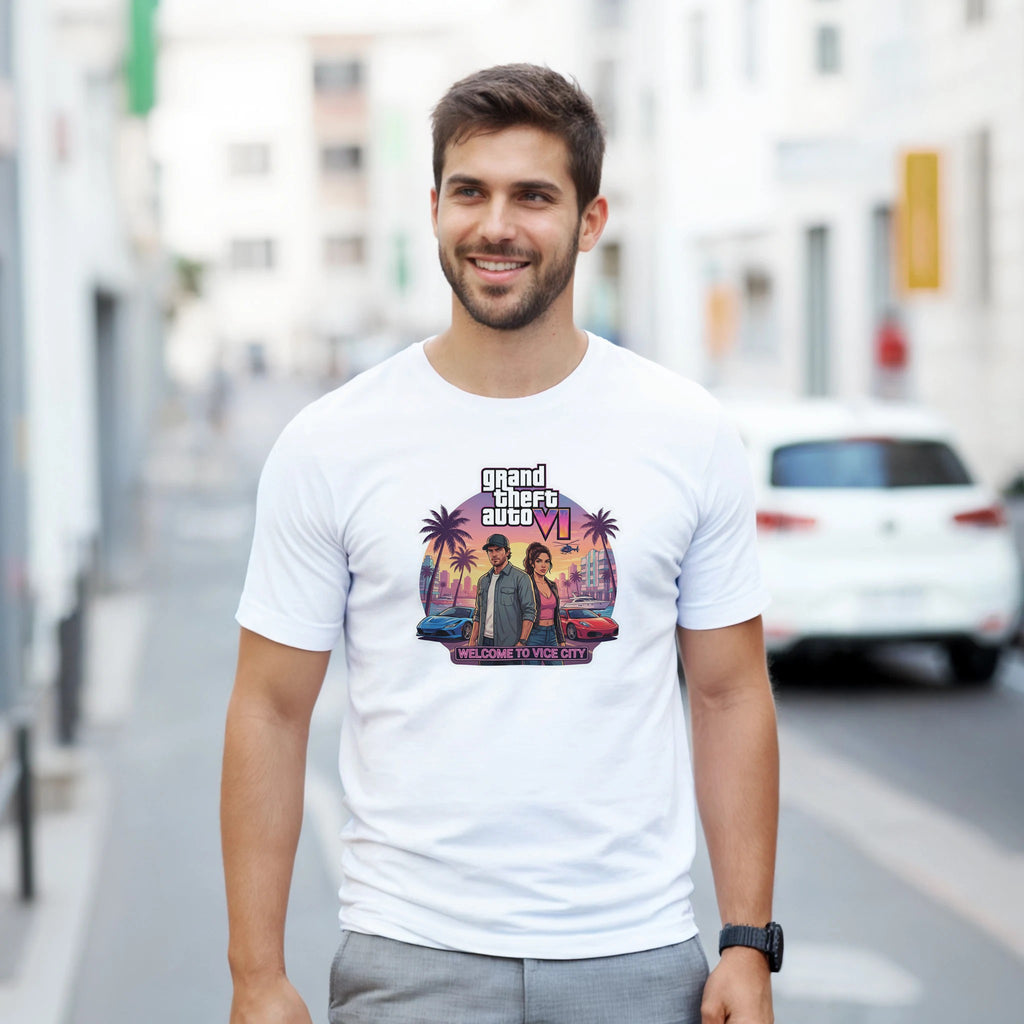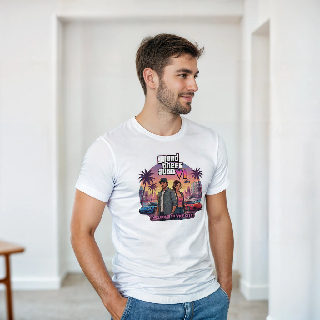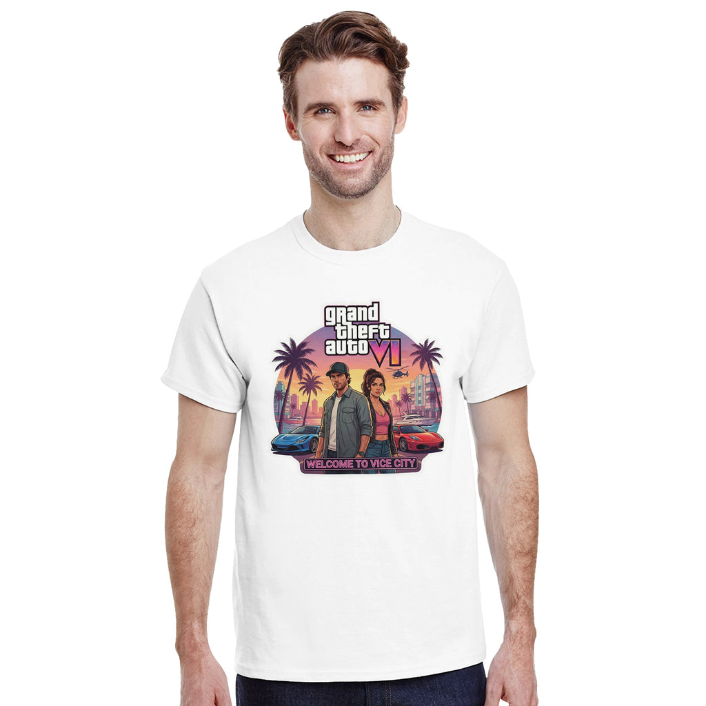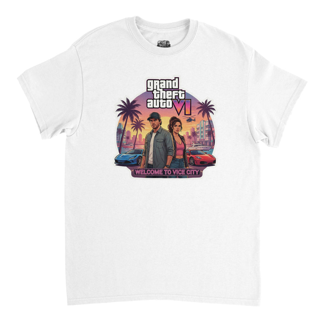 GTA VI Vice City Heavyweight Unisex T-Shirt | Gildan 5000 channels neon streets, fast cars, and big plans with durable, breathable comfort. The GTA VI Vice City Heavyweight Unisex T-Shirt | Gildan 5000 is built for long nights and bold moves.