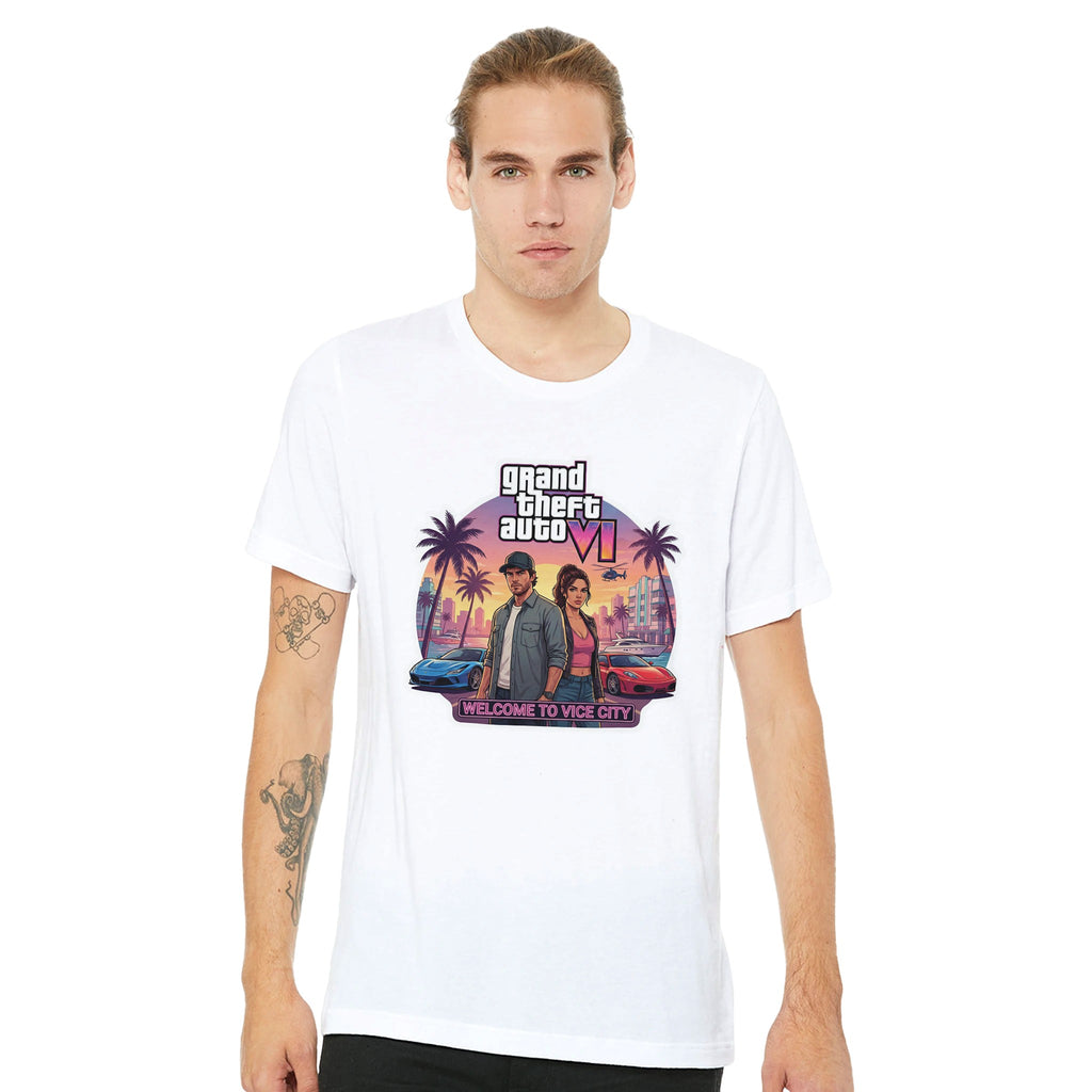 GTA VI Vice City Unisex T-Shirt | Bella + Canvas 3001 delivers soft, breathable comfort with neon-soaked style and a clean, modern fit. The GTA VI Vice City Unisex T-Shirt | Bella + Canvas 3001 is ready for boulevard nights and seaside mornings.
