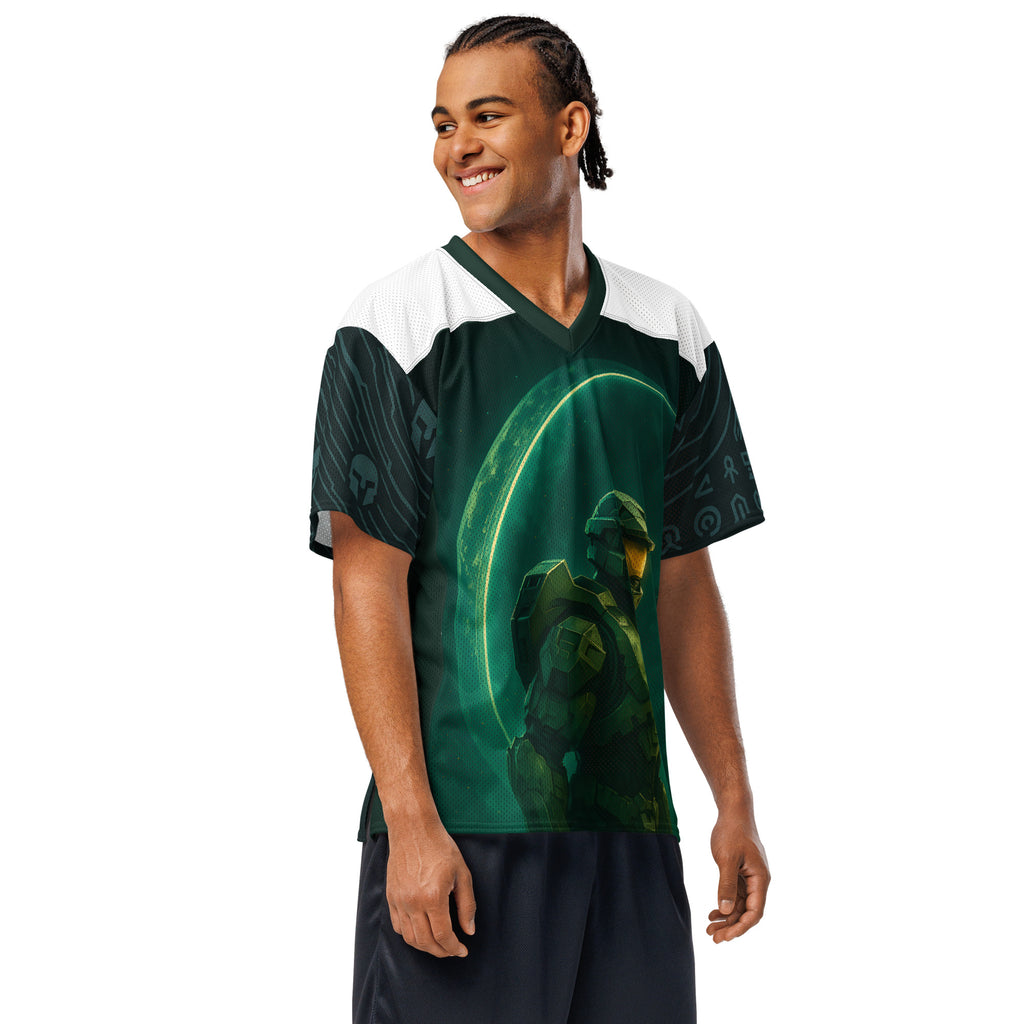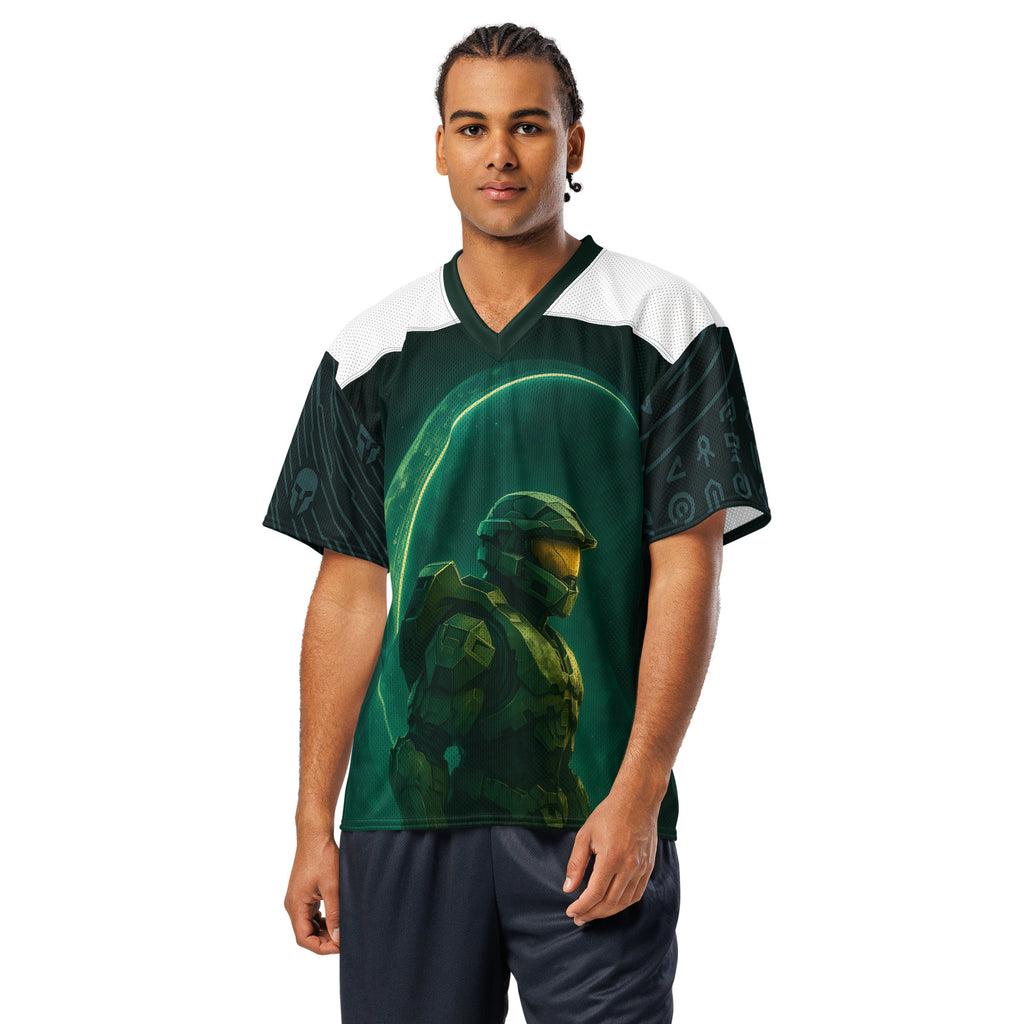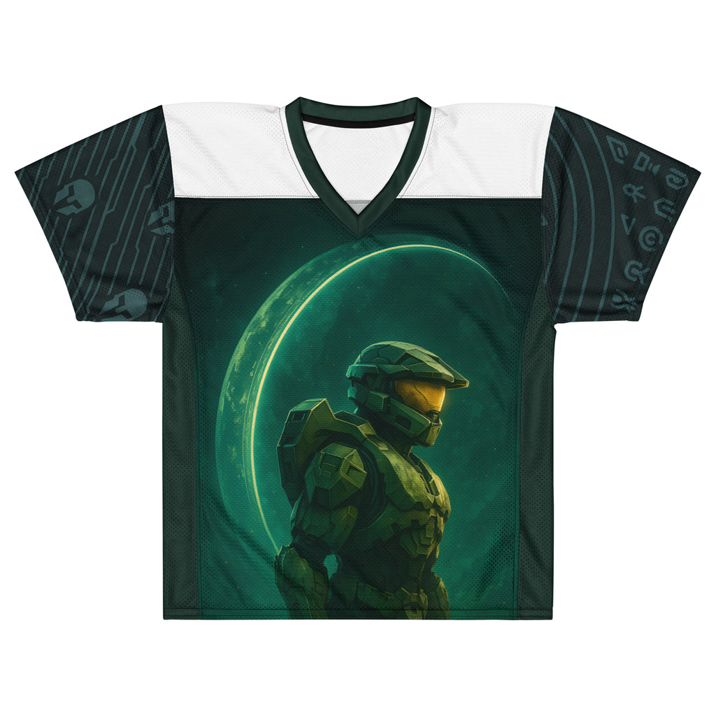 Halo Master Chief Dawn American Football Jersey brings gridiron energy to the UNSC. Lets finish the fight with Master Chief at the line.