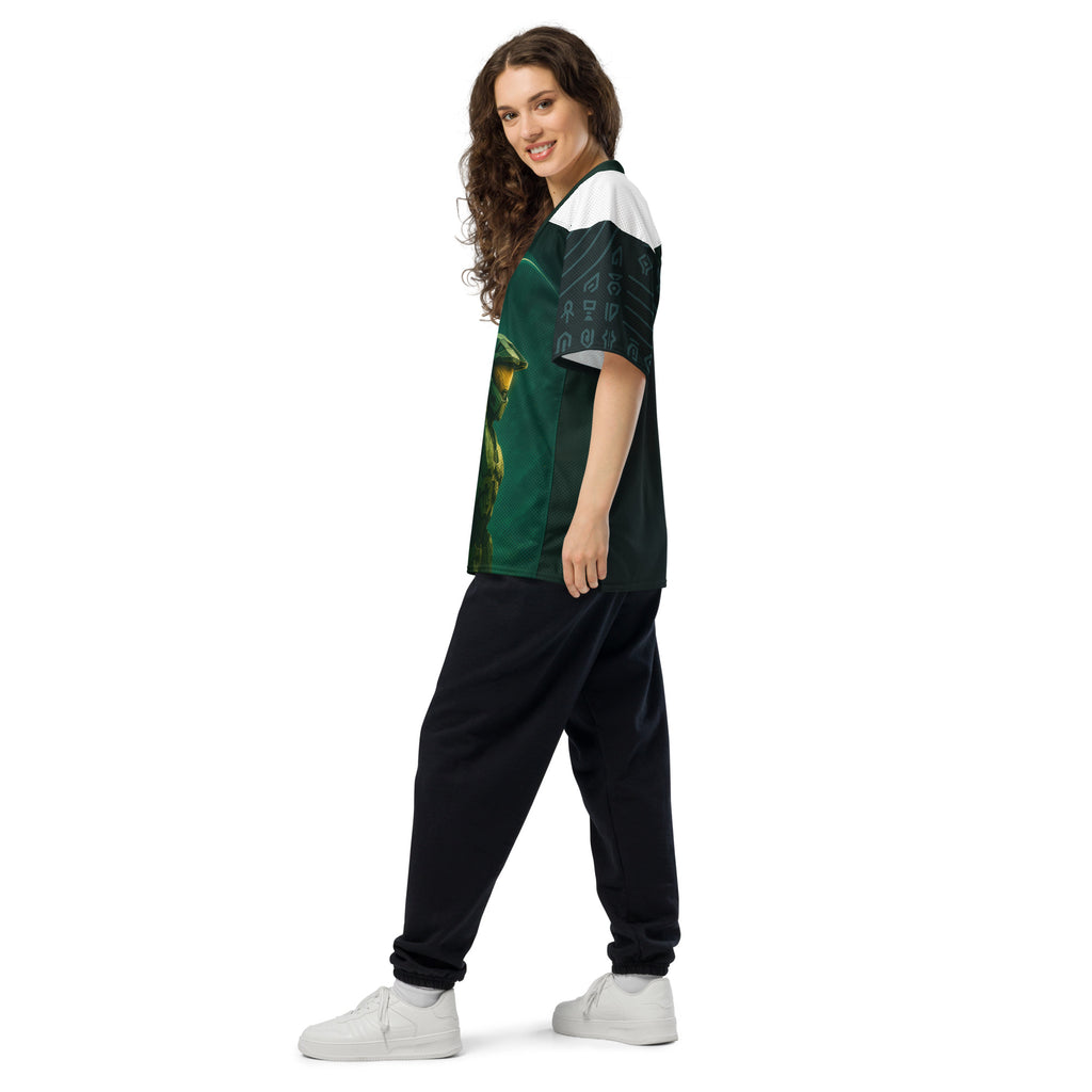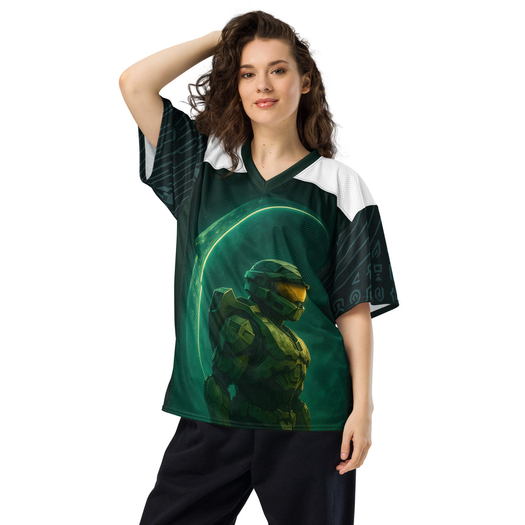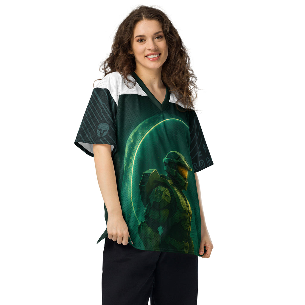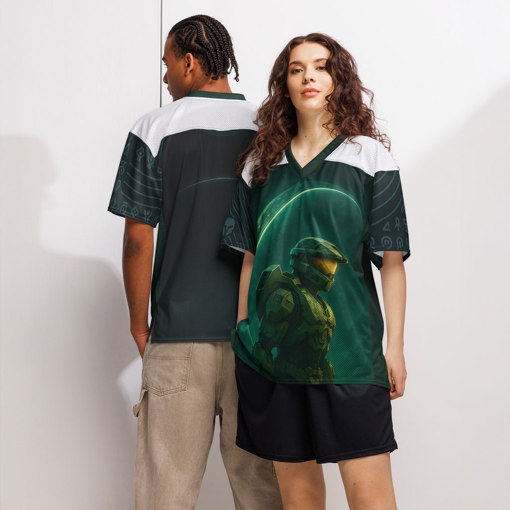 Halo Master Chief Dawn American Football Jersey brings gridiron energy to the UNSC. Lets finish the fight with Master Chief at the line.