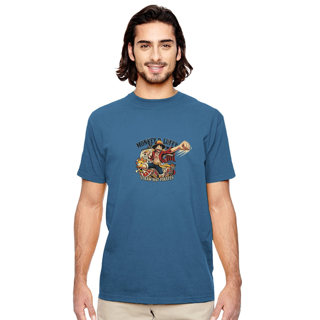 The One Piece Monkey D. Luffy Organic Unisex Crewneck T-Shirt | Econscious EC1000 is made from 100% organic ring-spun combed cotton and is well suited for fans who want a softer, more eco-conscious anime shirt. Its durable 5.5 oz fabric and clean crewneck look make it a versatile choice for casual Straw Hat-inspired outfits.