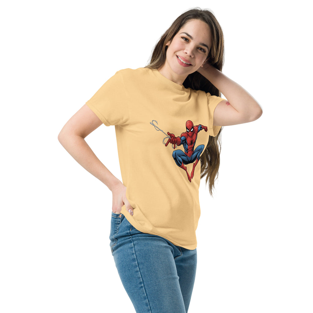 Marvel Spider-Man Classic Tee brings friendly neighborhood energy to your daily fit. Lets swing through the city and keep the streets safe.