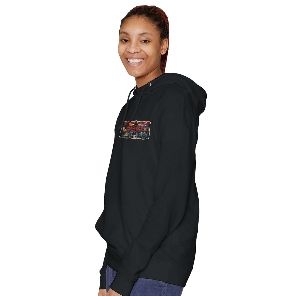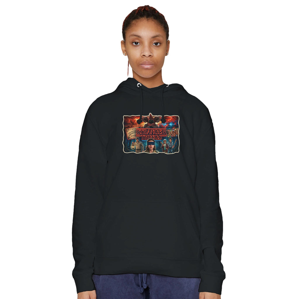 Stranger Things Premium Unisex Hoodie | Laneseven LS13001 Black delivers midweight warmth, soft comfort, and a premium feel with a sleek black finish. The Stranger Things Premium Unisex Hoodie | Laneseven LS13001 Black is built for cozy nights and long adventures.