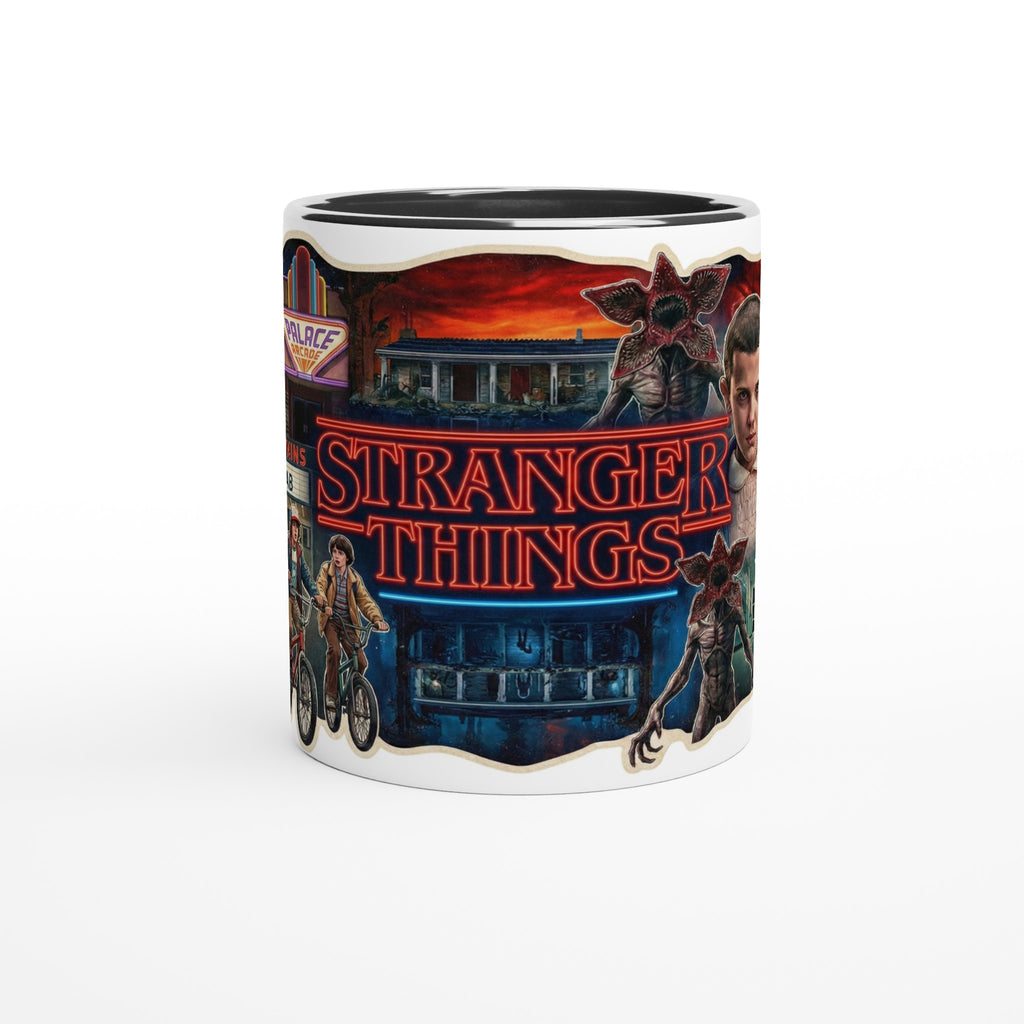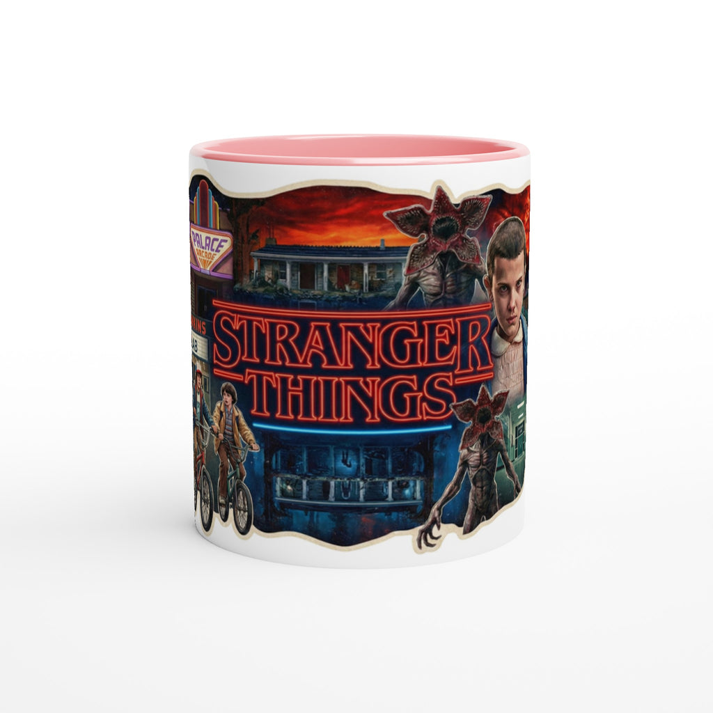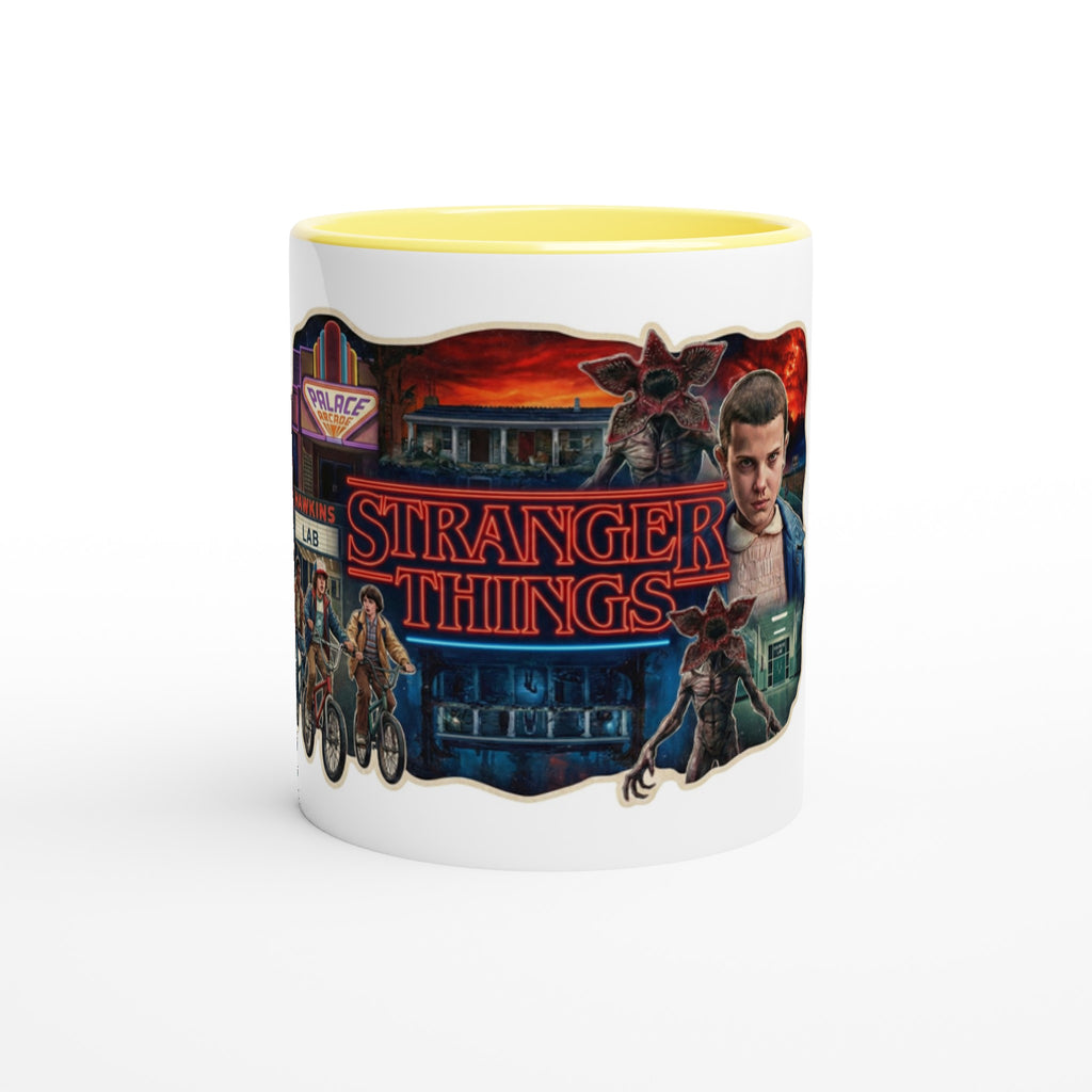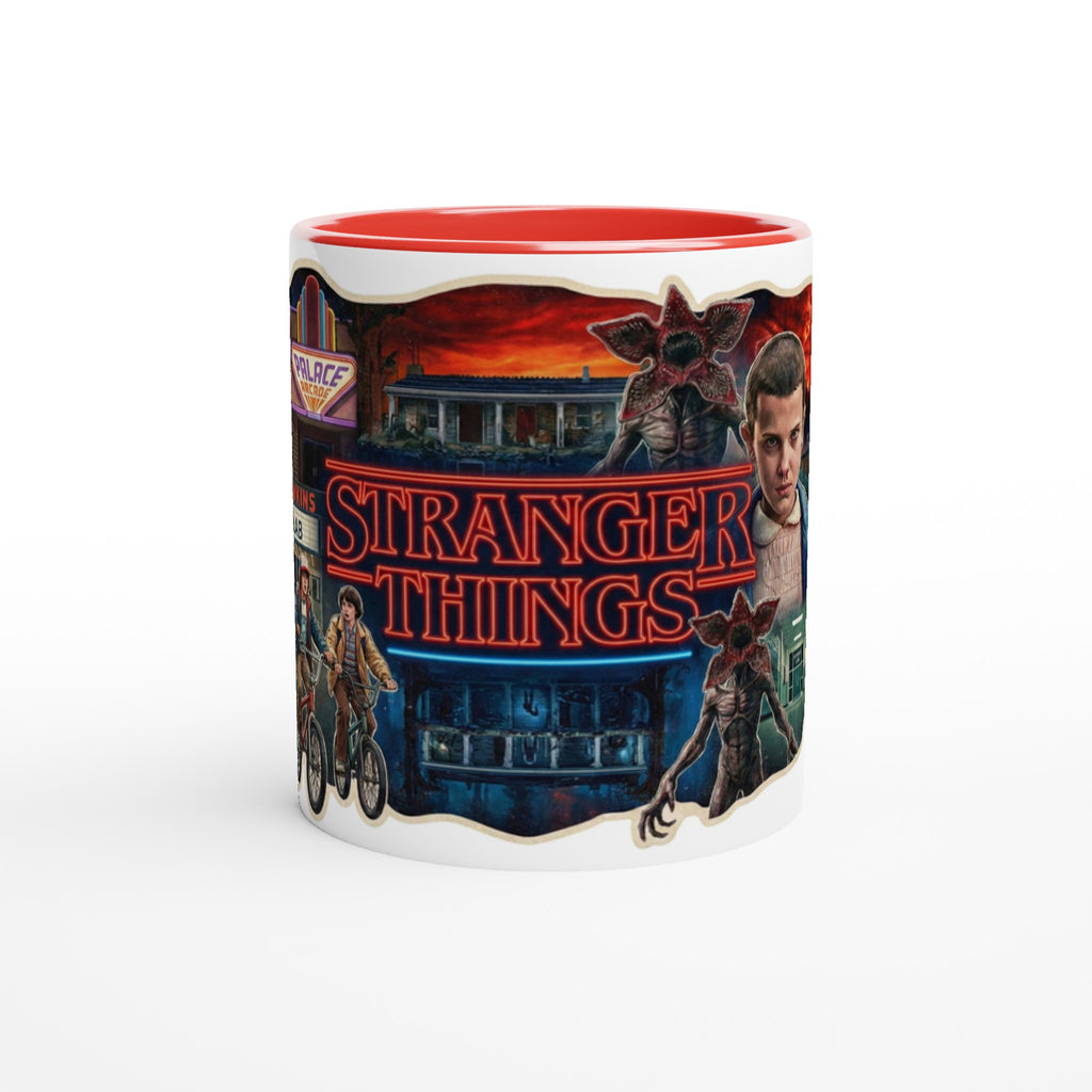 Stranger Things White 11oz Ceramic Mug with Color Inside adds Netflix style to your daily drink. The Stranger Things White 11oz Ceramic Mug with Color Inside brings a pop of color to every sip.