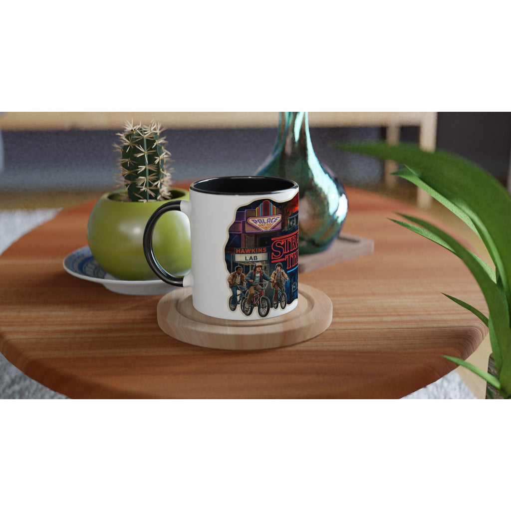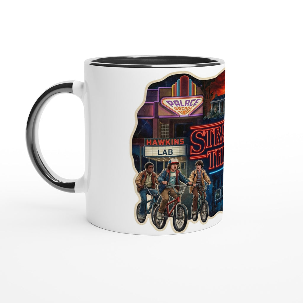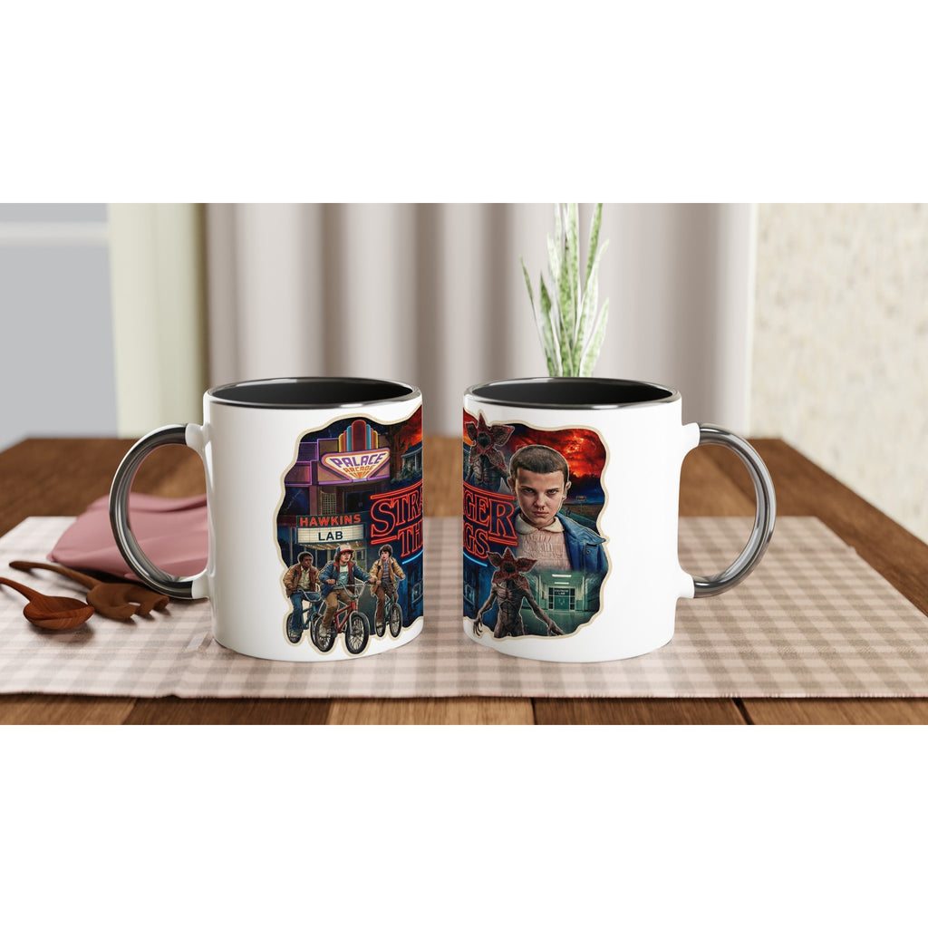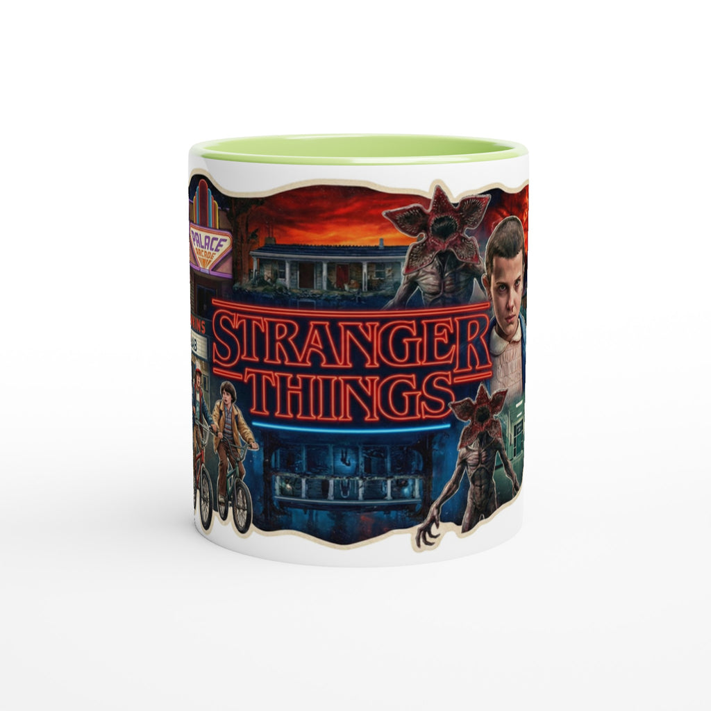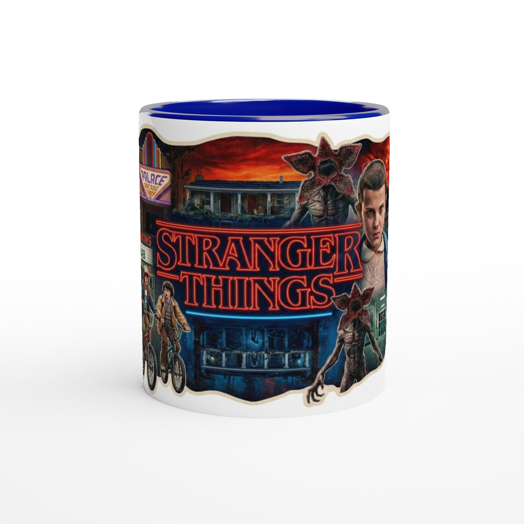 Stranger Things White 11oz Ceramic Mug with Color Inside adds Netflix style to your daily drink. The Stranger Things White 11oz Ceramic Mug with Color Inside brings a pop of color to every sip.